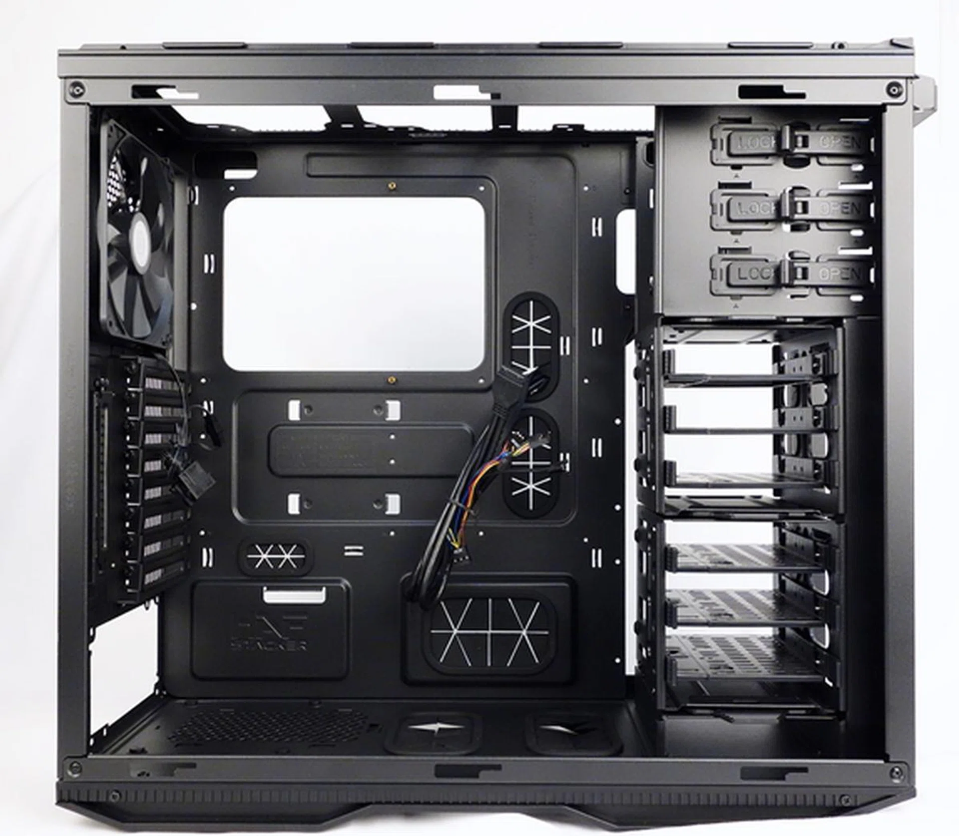 With the HDD enclosures removed, another advantage is more room for long graphics cards with oversized custom cooling systems.