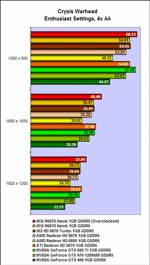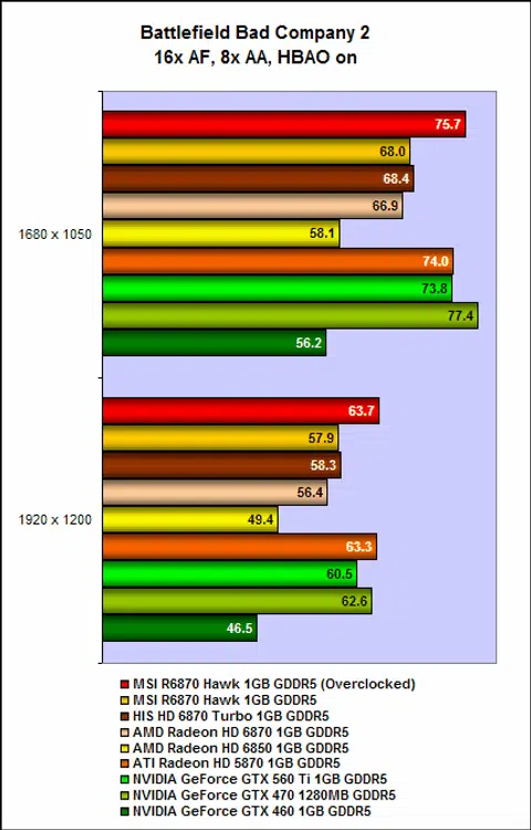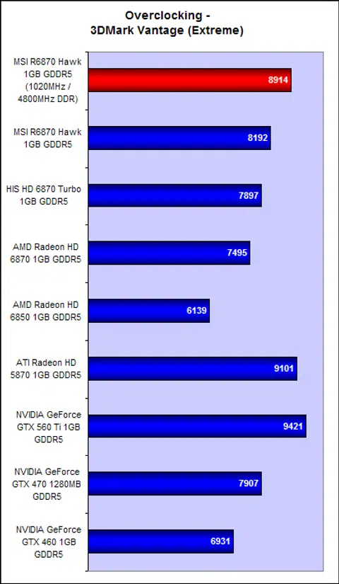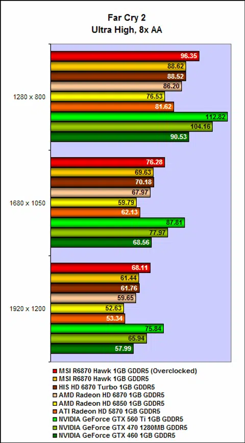 Also, since the MSI R6870 Hawk is touted for its overclocking ability, we will also present results of the card running in the highest overclocking state that we could attain to see how much more performance you can squeeze out of it.