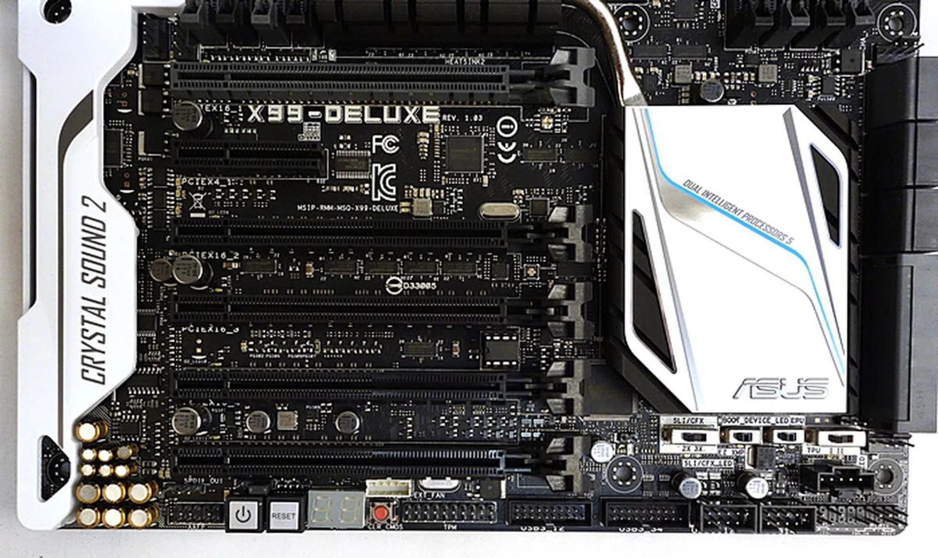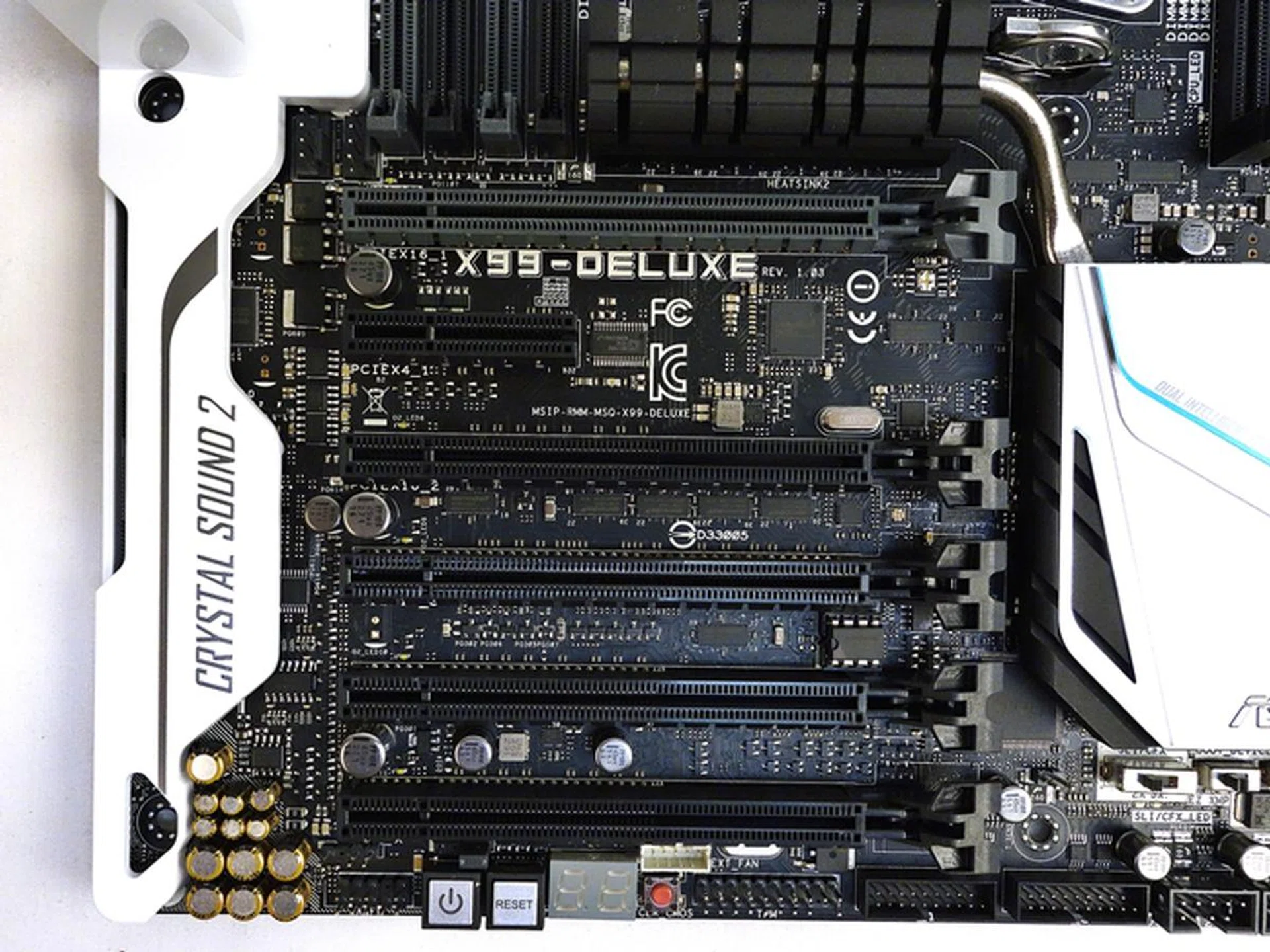 The board has five PCIe Gen 3.0 x16 expansion slots, and a PCIe 2.0 x4 slot. The lone PCIe 2.0 slot shares bandwidth with one USB 3.0 header, and the SATA Express connector. The lane configurations of these slots are dependent on the CPU installed. Currently, there are three Intel Core i7 Extreme Edition processors that are compatible with the board's LGA2011-v3 CPU socket.
