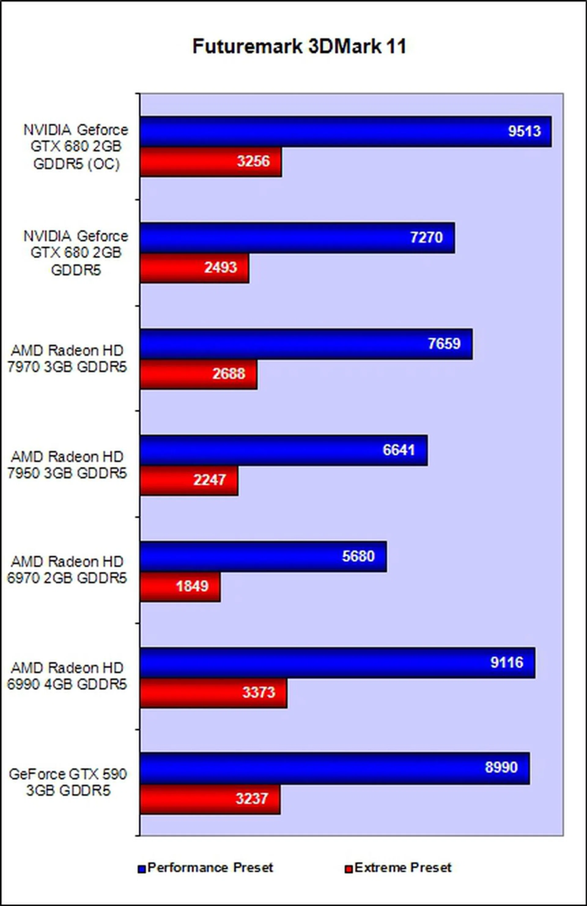 - NVIDIA GeForce GTX 680 2GB GDDR5 (ForceWare 300.99)