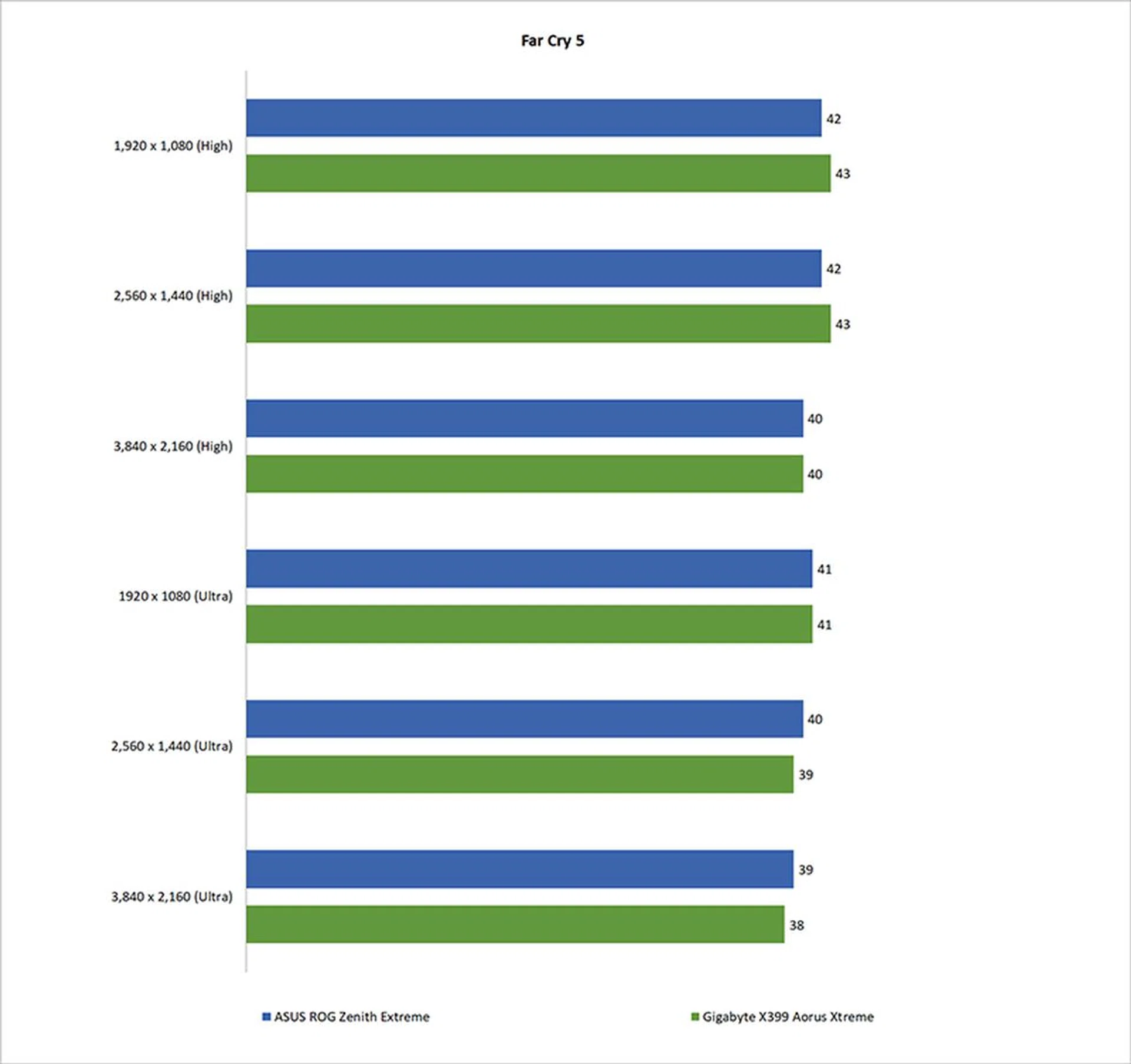 Far Cry 5 is heavily CPU-limiting, and the Threadripper 2990WX is clearly holding performance back in this case.