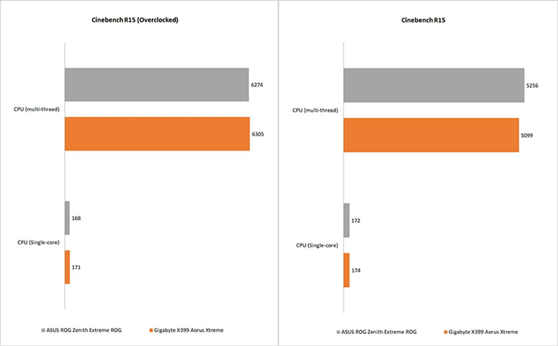 The ASUS board had a small 3 per cent lead in Cinebench, but once again, I'd say that that's a minuscule difference.