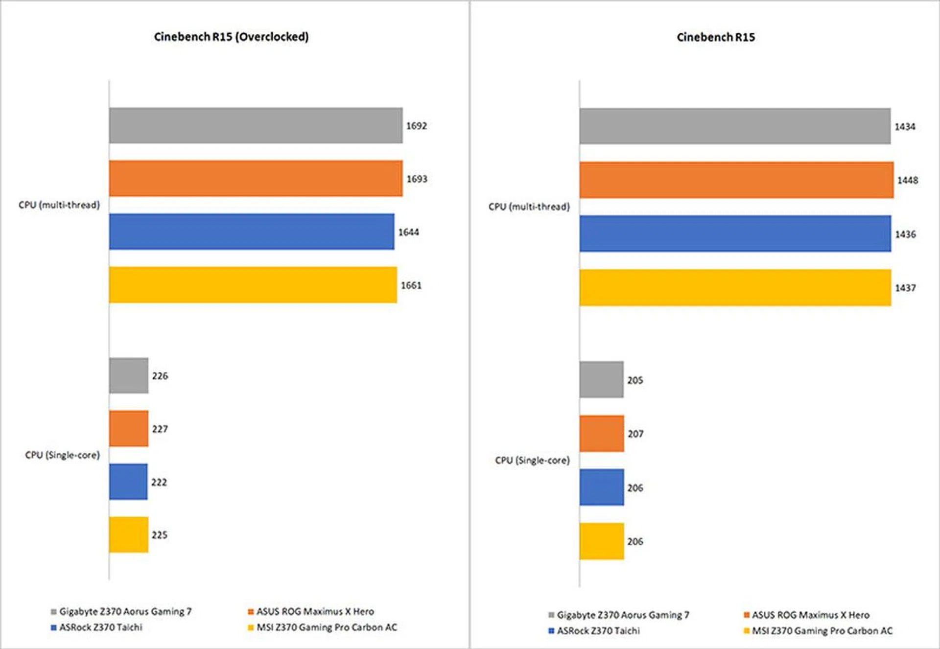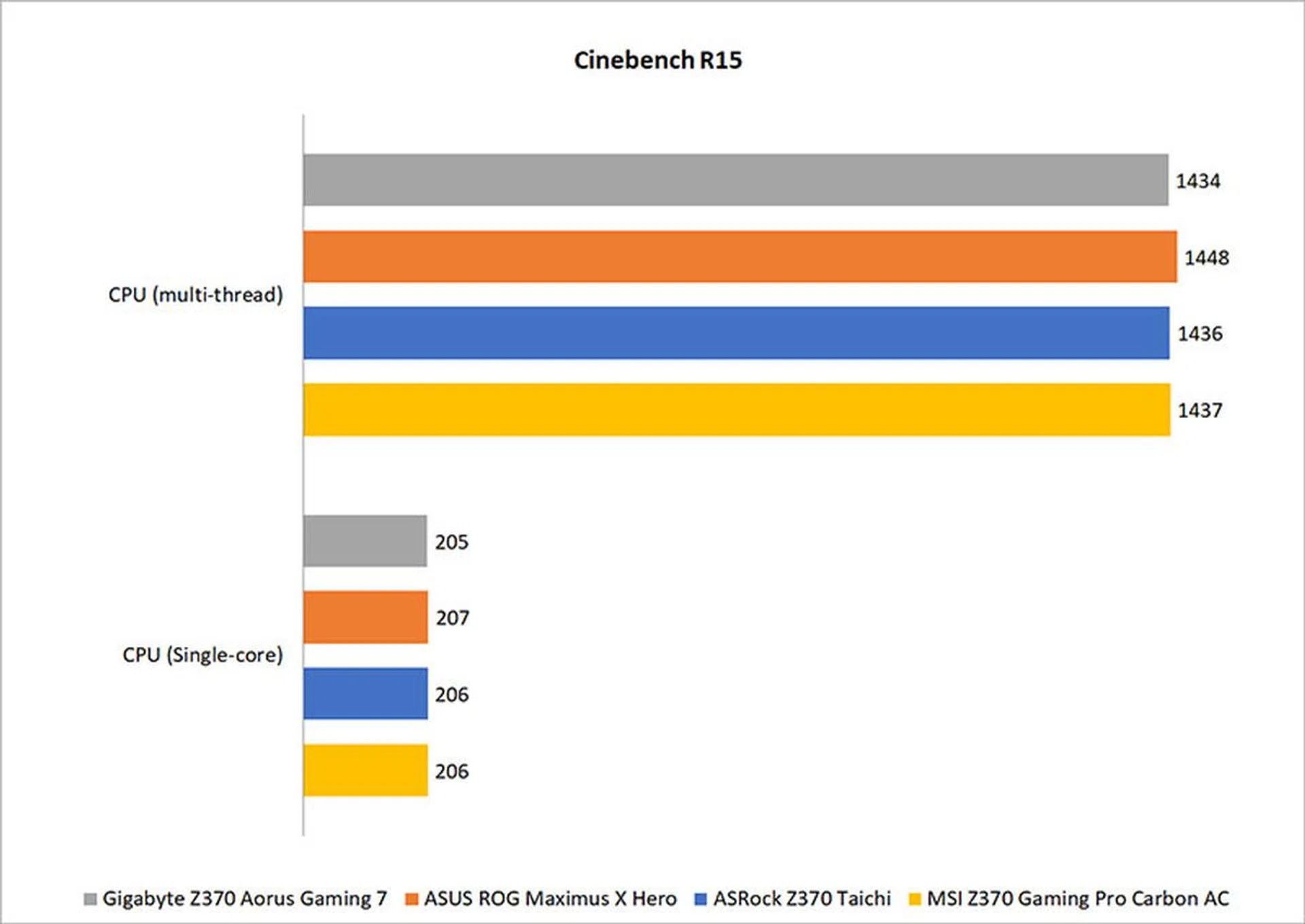 Cinebench is a benchmark tool used to compare CPU performance across different systems, so we’ll be using it to evaluate how well our Intel Core i7-8700K plays with the different motherboards. The multi-threaded test scenario uses all of the system’s processing power – it can utilize up to 256 threads – to render a photorealistic 3D scene, making use of various algorithms to stress all available processor cores. Conversely, the single-core test stresses just one core.