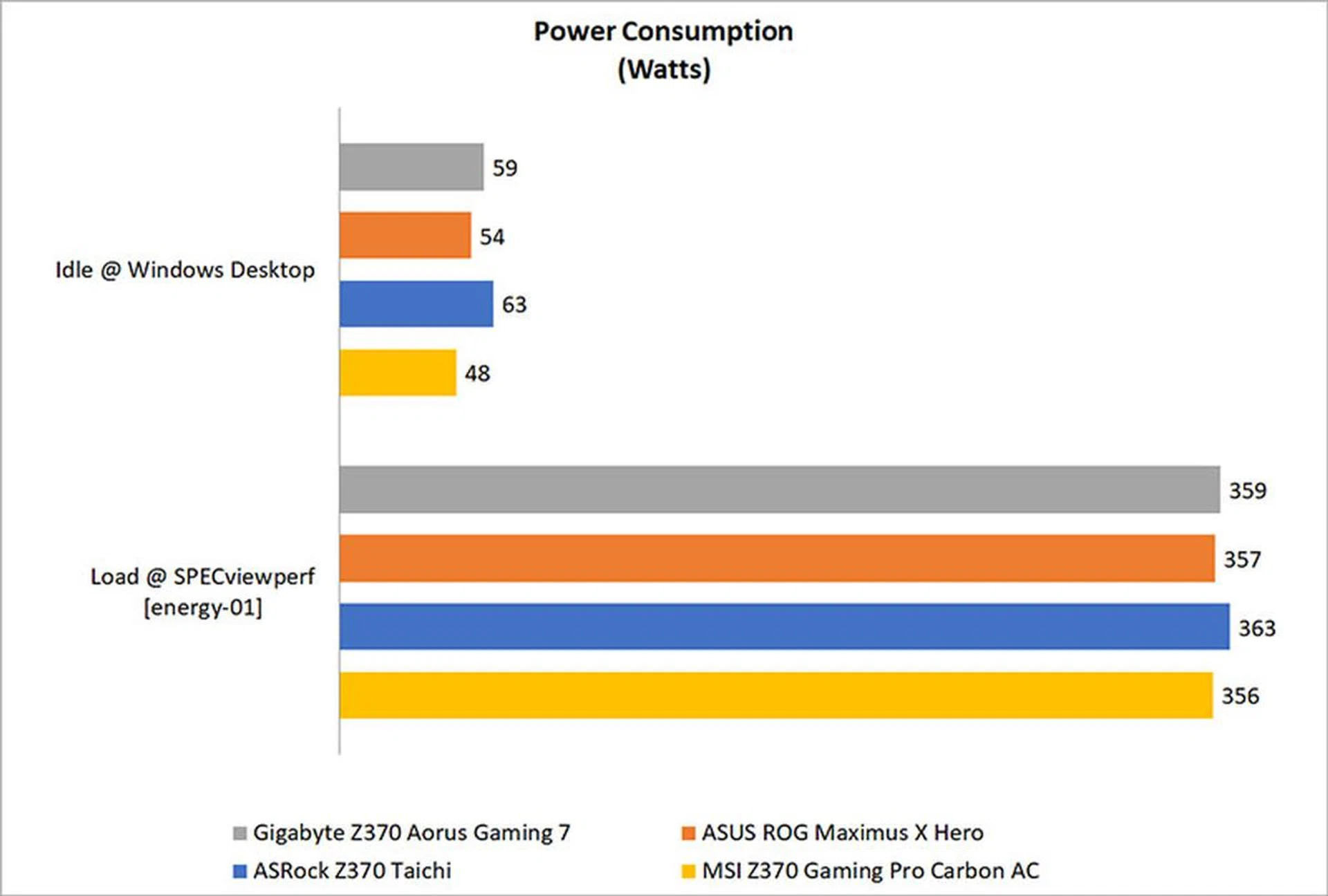Still, even though it consumed marginally more power than the latter two, it did better than the ASRock board. The ASRock Z370 Taichi has 12 phases dedicated to both the CPU and iGPU, so it should in theory have better power efficiency and better power regulation. As a result, it’s to the Gigabyte board’s credit that that wasn’t the case.