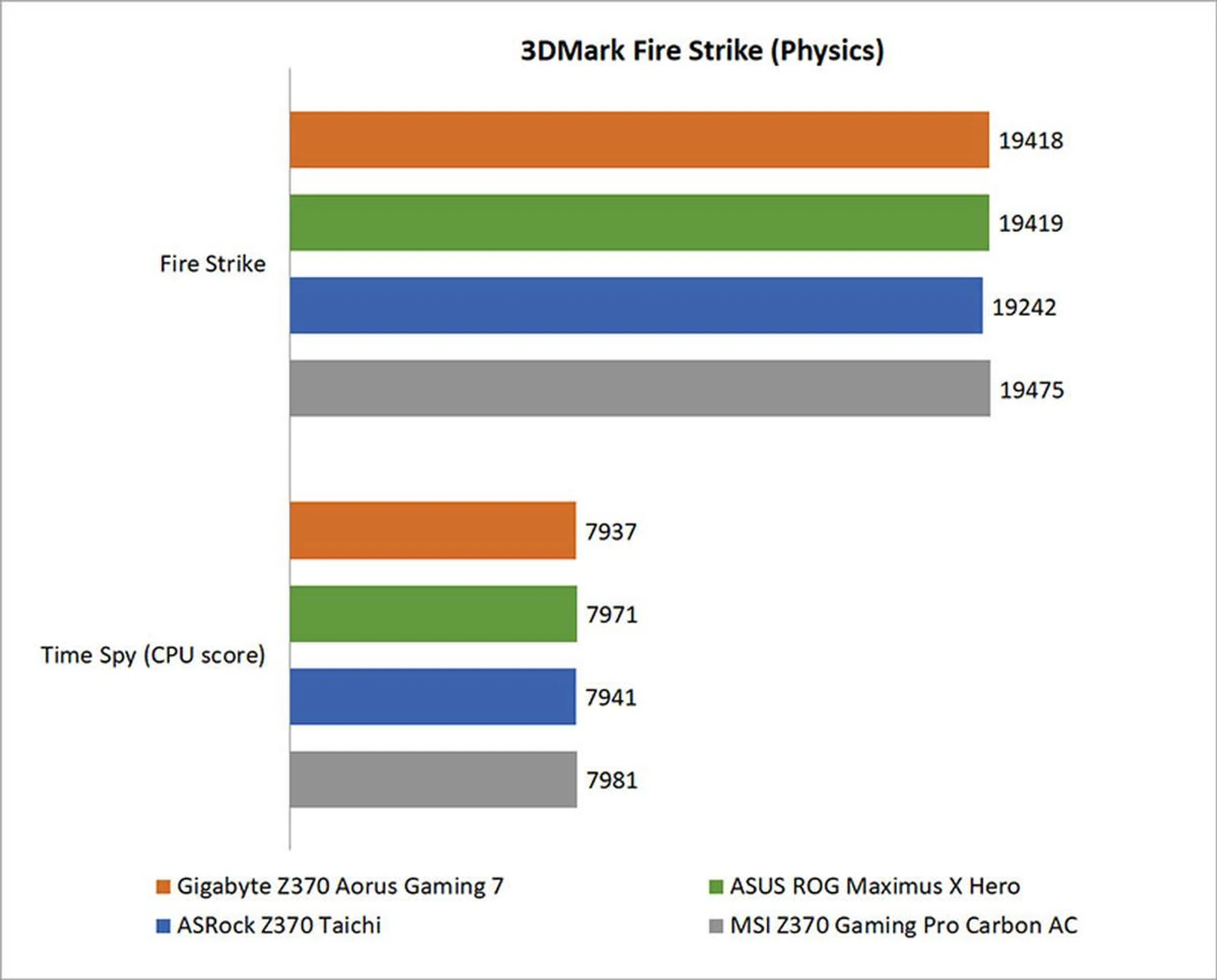 We’ve also teased out the Physics and CPU scores for the Fire Strike and Time Spy tests and compiled them in separate tables to give a better idea of CPU performance on each board.