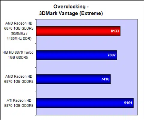 The key comparison here will be between the HIS HD 6870 Turbo and a reference Radeon HD 6870 as we are interested to find out how much of a boost the slightly uprated clock speeds of the HIS card can provide.