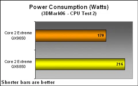 The Penryn processors retain all of the Core microarchitecture's power saving features and benefit further from Intel's new 45nm process technology (If you still haven't taken a look at our "" article, now is the time to do it), but just how much of an improvement can this bring? If you look at the charts below, we can safely say that the improvements are amazing.