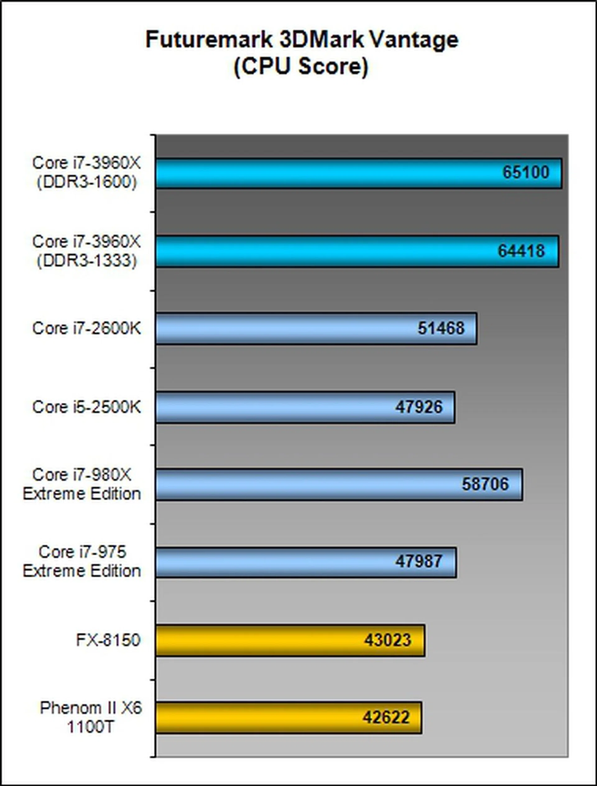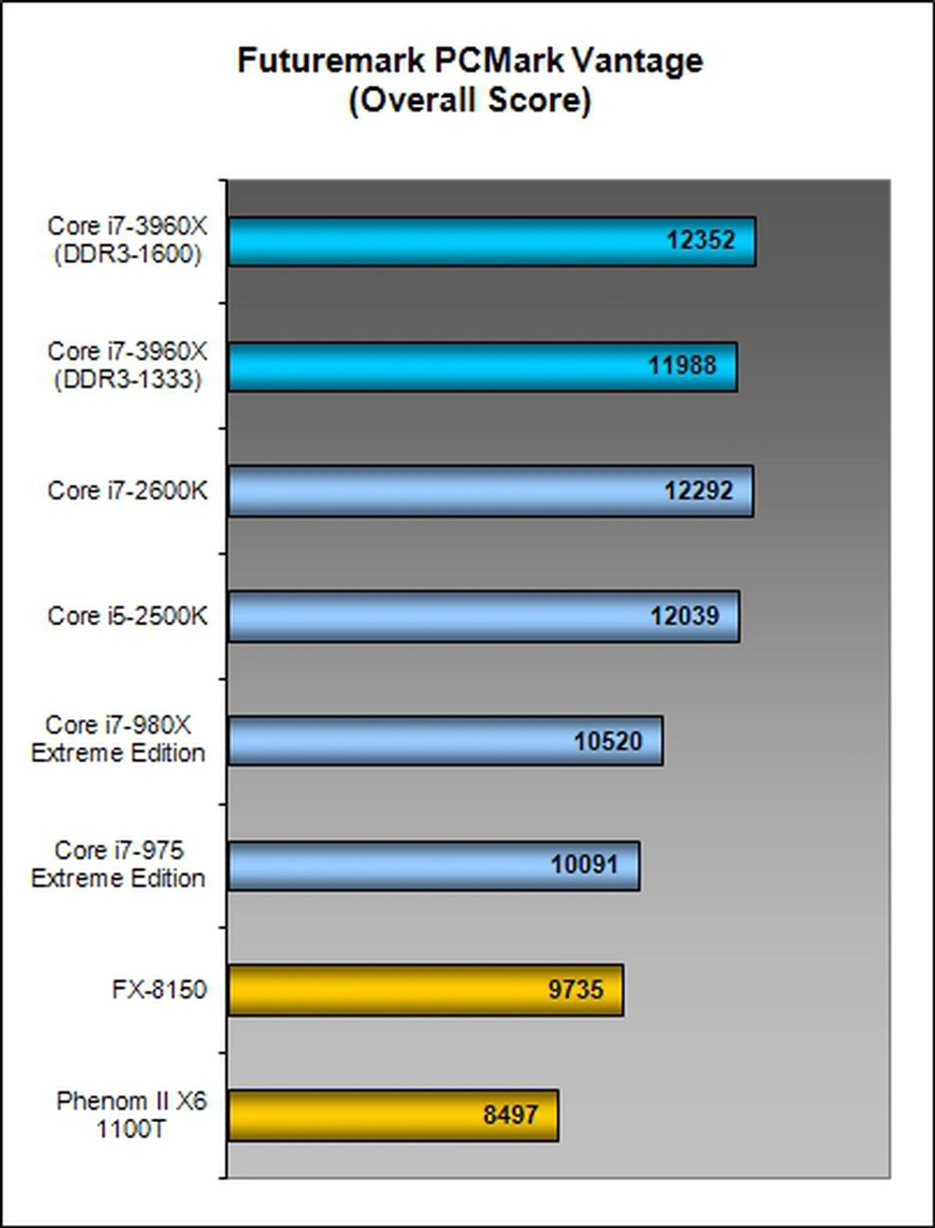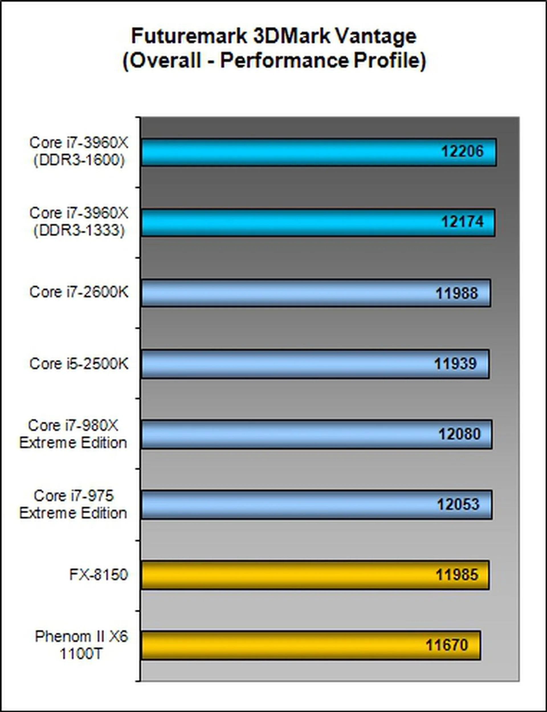 When it comes to the overall 3DMark Vantage score, it's more or less determined by your graphics card. The new Sandy Bridge-E manages results similar but not better than the mainstream Sandy Bridge processors. The rest of the comparisons however do reveal notable performance differences.