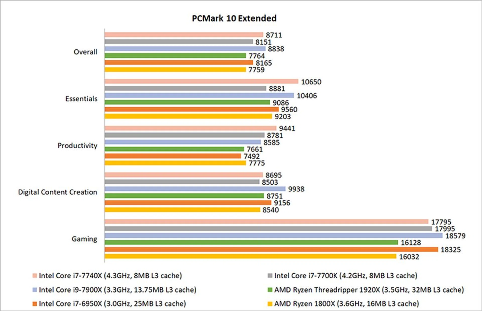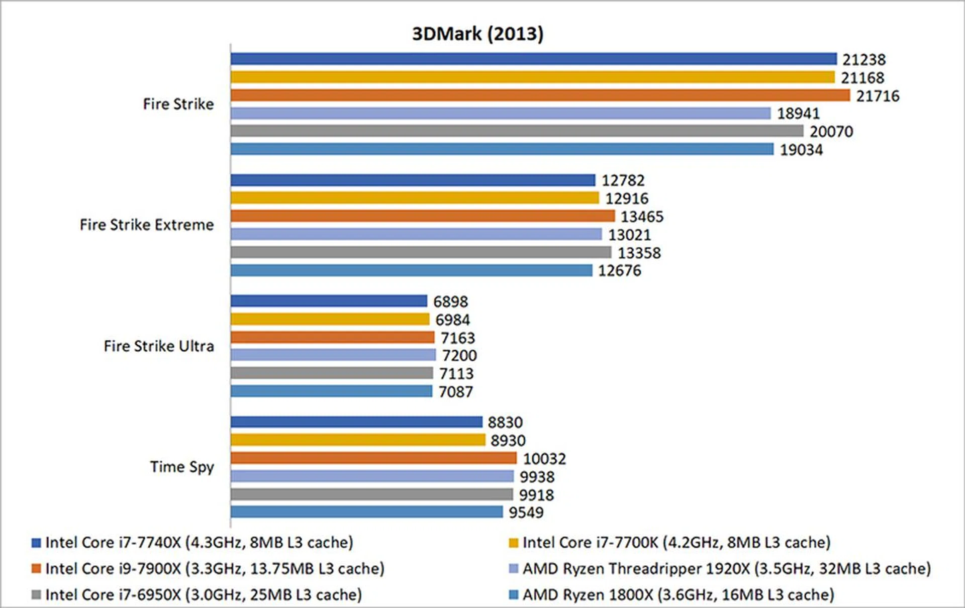 There actually isn’t a lot that separates the quad-core processors from something like the 10- and 12-core Intel Core i9-7900X and Ryzen Threadripper 1920X in terms of gaming performance. For instance, the Core i7-7740X trailed the Core i9-7900X by only two per cent in 3DMark Fire Strike.