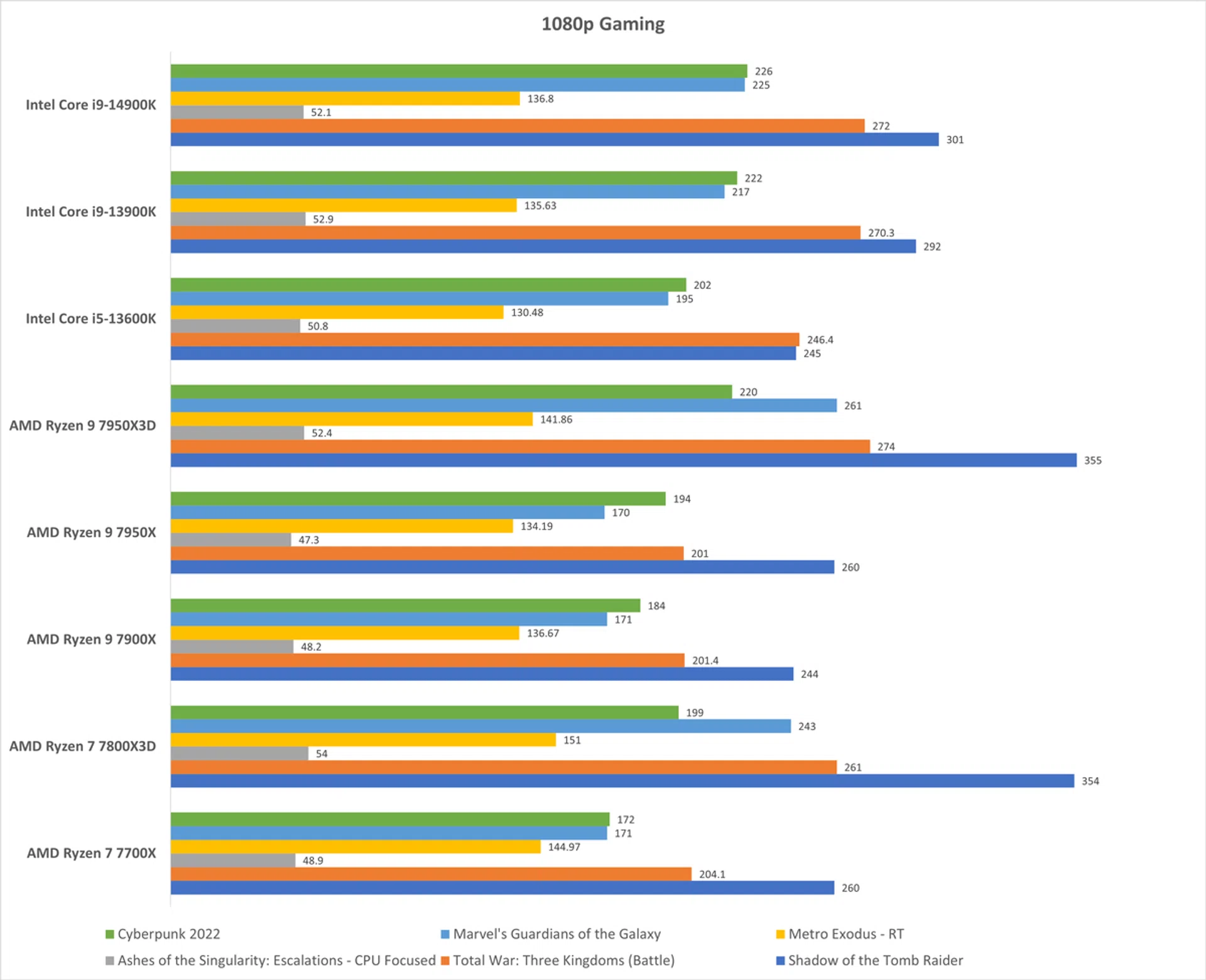 Another observation here is that as far as gaming is concerned, there isn’t a clear performance advantage that the i9-14900K has over the i9-13900K.