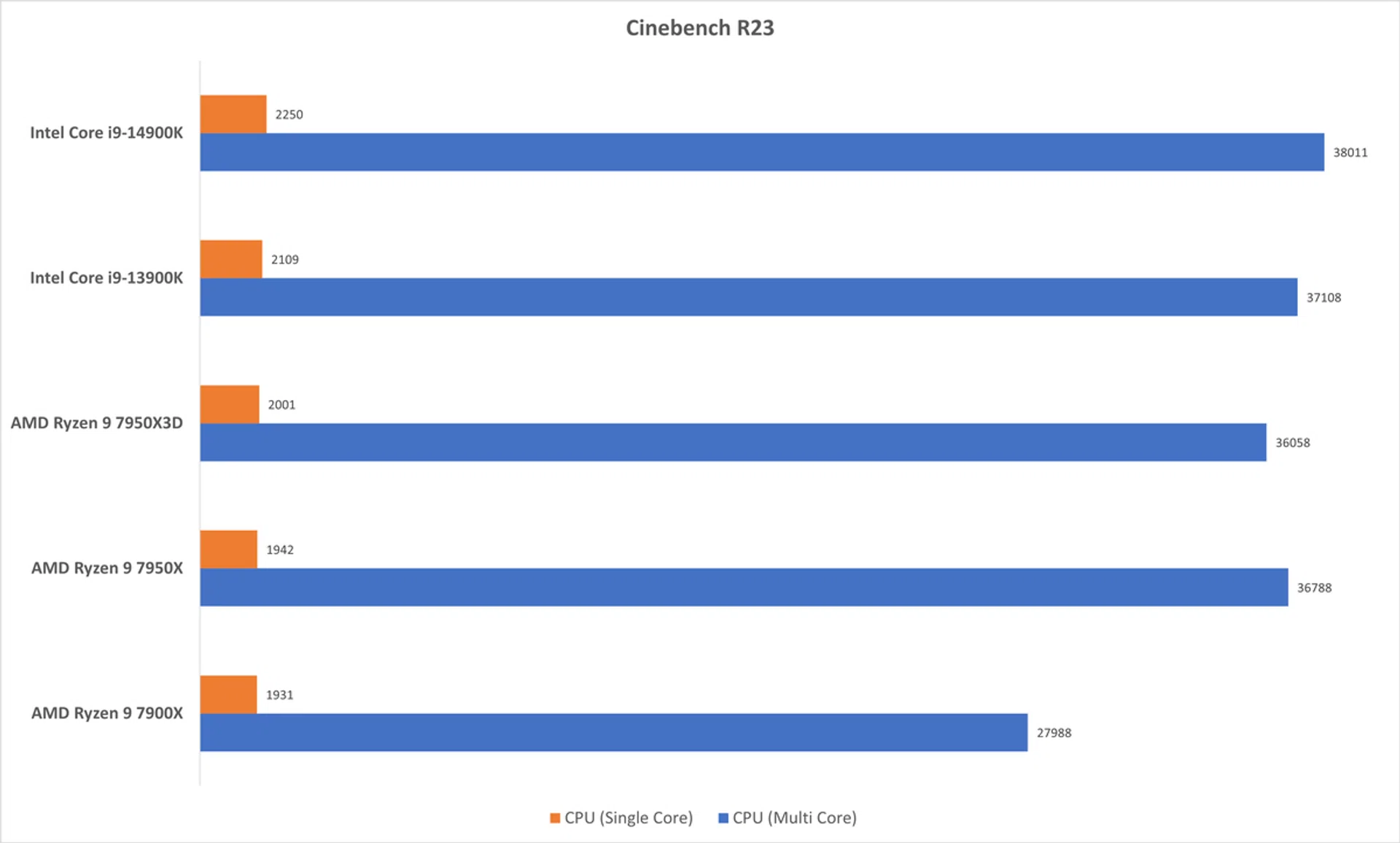 I put the Core i9-14900K through some of our regular gaming and workload benchmarks and against AMD’s flagship counterparts. In tests geared towards creative professionals, the Core i9-14900K outperformed AMD's Ryzen 9 7950X and 7950X3D. This builds on the already strong performance of its predecessor, the 13900K, against AMD in similar tasks.