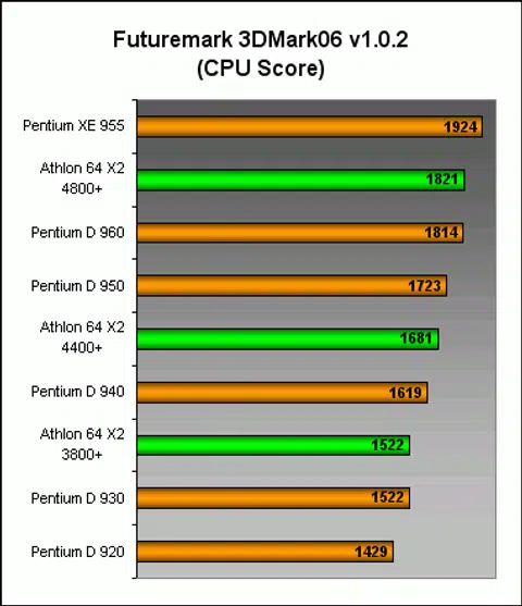 Keeping the best for the last has been our style of presenting benchmark results and it's no different in this article as we present gaming related results on the following two pages. First up is the trio of results we obtained from three different versions of FutureMark's synthetic CPU game tests - 3DMark03, 3DMark05 and the latest 3DMark06 installment.