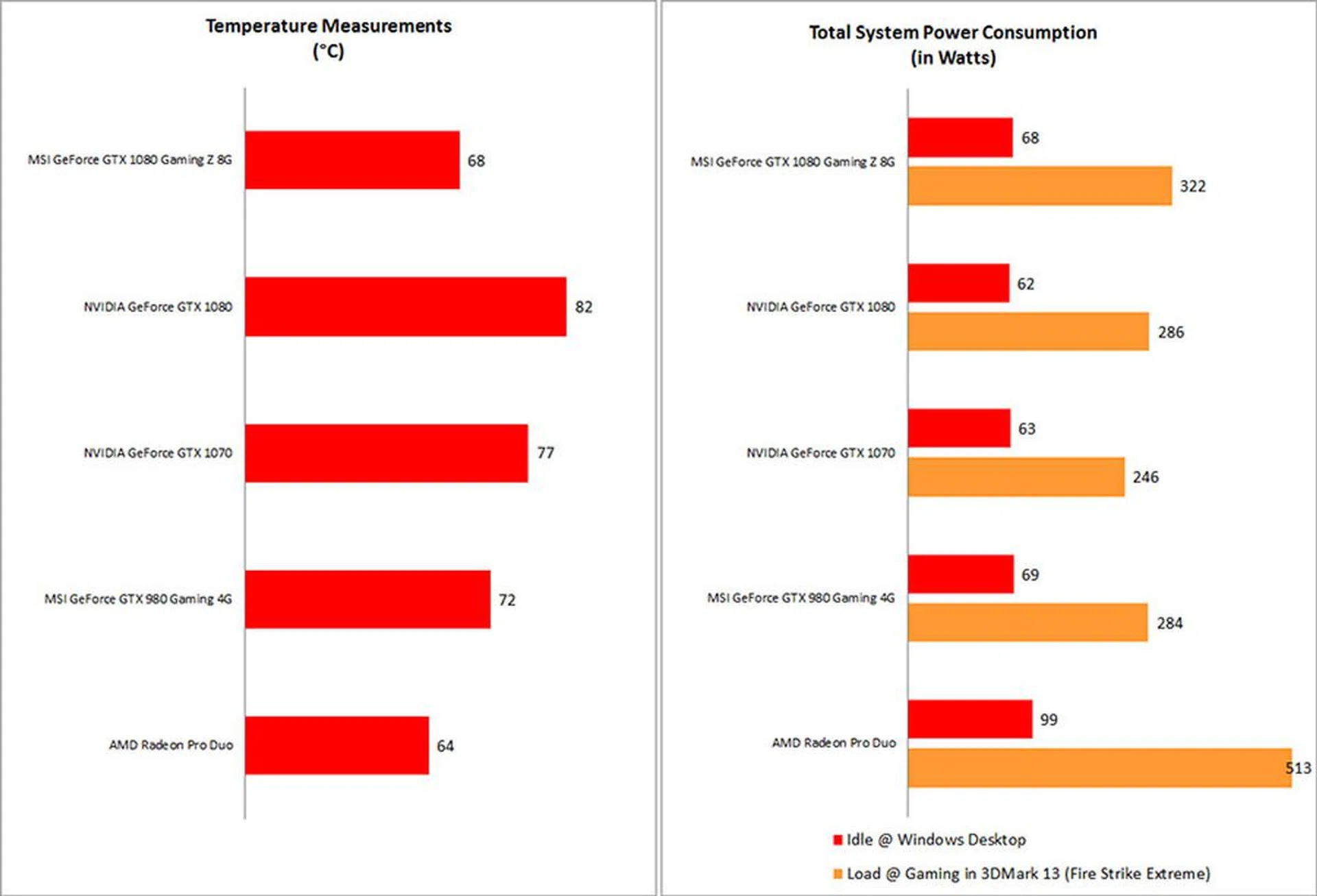 We’ll naturally be pitting the MSI GeForce GTX 1080 Gaming Z 8G against the Founders Edition card to see how much of an improvement the factory overclocks and custom TwinFrozr VI cooler offers. We also threw in some of NVIDIA’s other Pascal cards to provide some perspective on how it performs relative to everything else. In addition, we’ve included figures from the MSI GeForce GTX 980 Gaming 4G, a card that uses last generation’s TwinFrozr V cooler. To round things off, we also added in the dual-Fiji Radeon Pro Duo from AMD’s end.