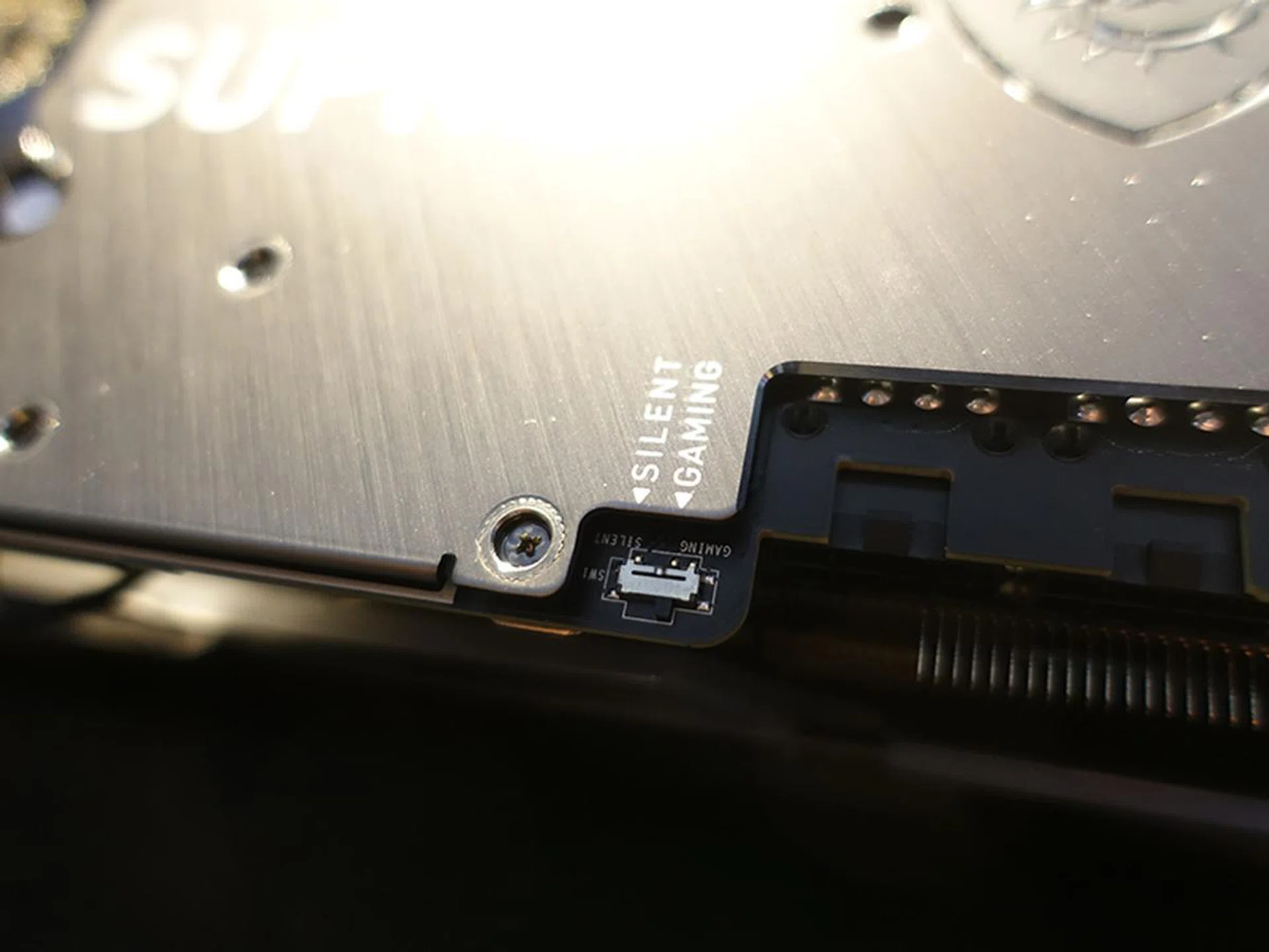 At the edge of the card, you'll notice a dedicated BIOS switch that lets you switch between Gaming and Silent modes without the need for any software. The PCB itself has gotten some special treatment too, with a thickened copper layer for increased conductivity for better heat dissipation and reliability, according to MSI. Additional fuses were also built into the PCB for stronger safeguards against electrical damage.
