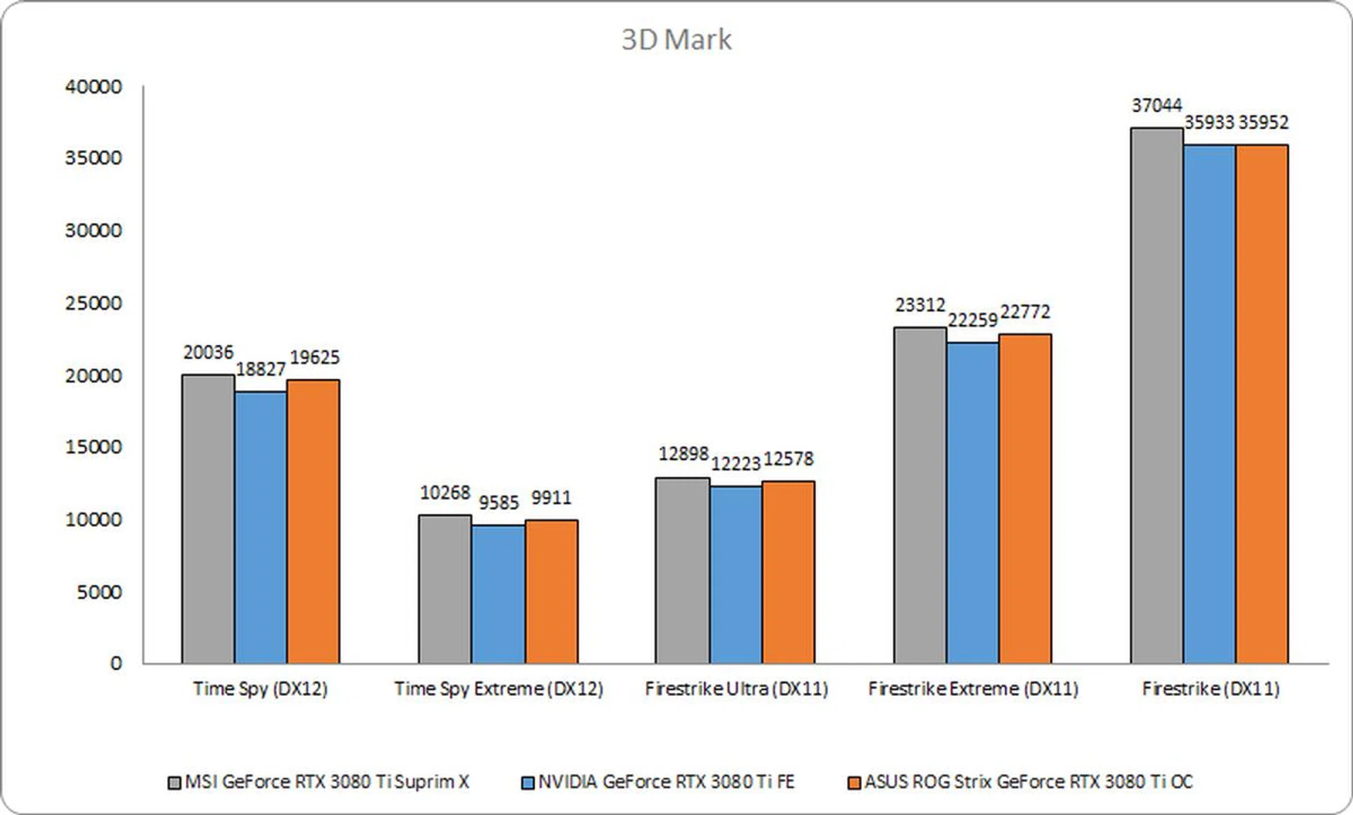 3DMark Time Spy Extreme Stress Test | MSI GeForce RTX 3080 Ti Suprim X | NVIDIA GeForce RTX3080 Ti Founders Edition | ASUS ROG Strix GeForce RTX 3080 Ti OC |
