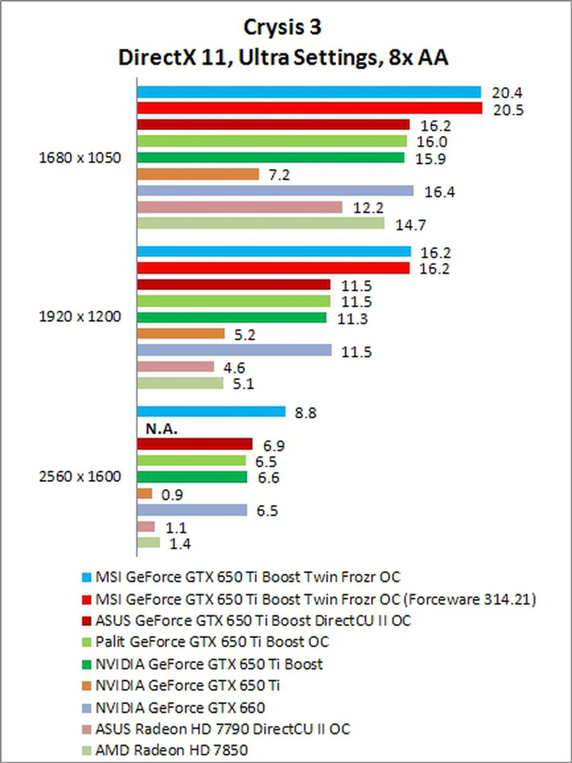 - NVIDIA GeForce GTX 650 Ti Boost 2GB GDDR5 (NVIDIA ForceWare 314.21 Beta)
