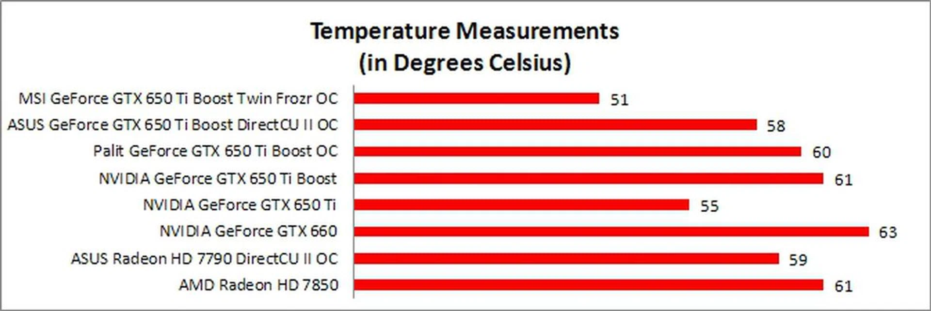 The Twin Frozr III cooling system proved to be extremely efficient as the MSI GeForce GTX 650 Ti Boost OC card was kept coolest during our temperature tests!