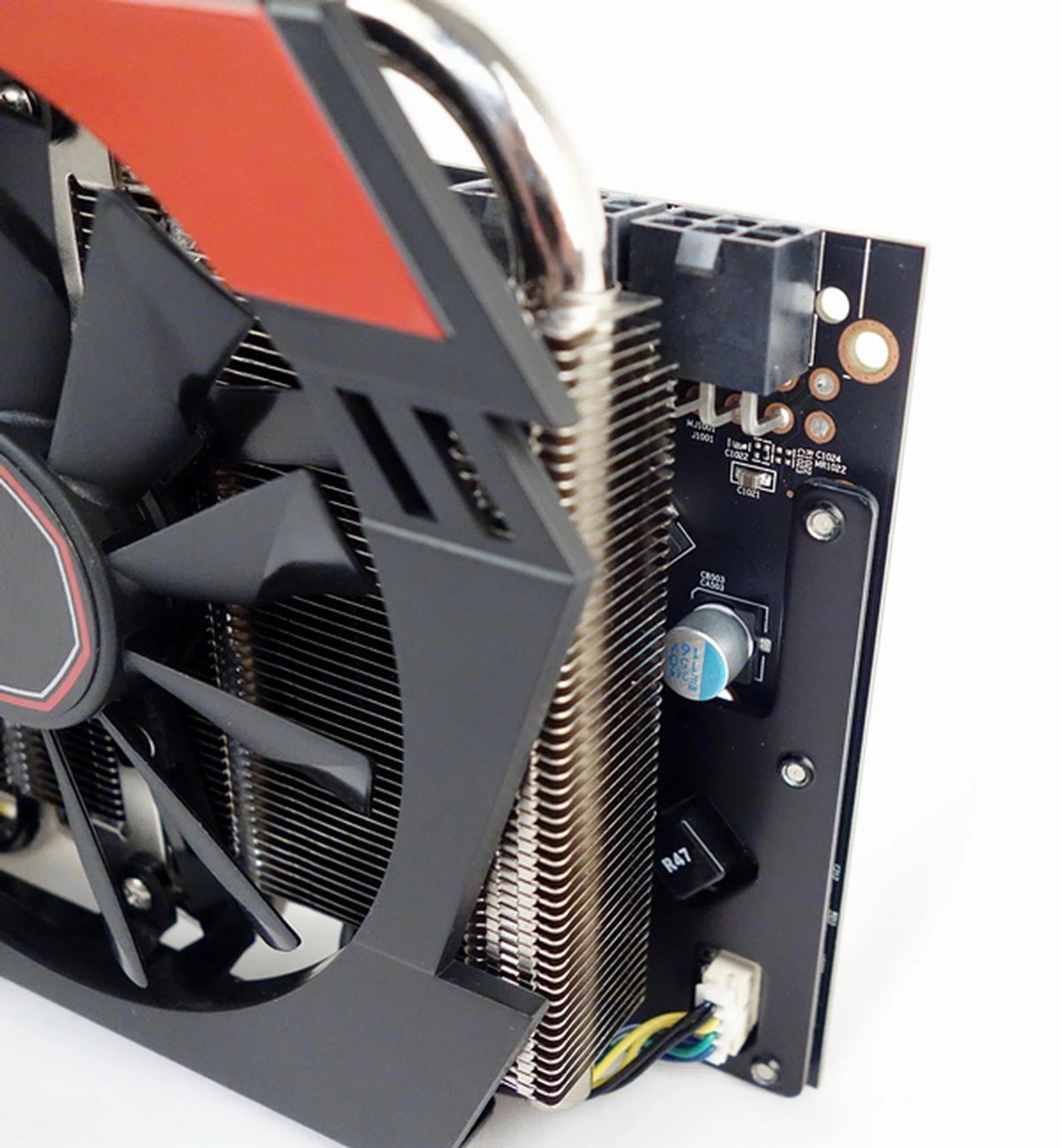 From the bottom of the card, we can see four copper heatpipes dubbed Superpipes that draw heat away from the GPU.