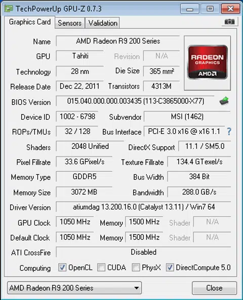 - MSI R9 280X Gaming 3G 3GB GDDR5 (AMD Catalyst 13.11)