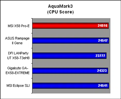 Similarly competitive here in AquaMark3, the MSI X58 Pro-E was performing up to its potential and showing some of its more expensive peers that it's just as capable.