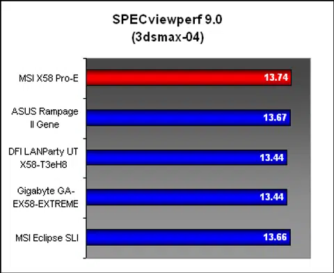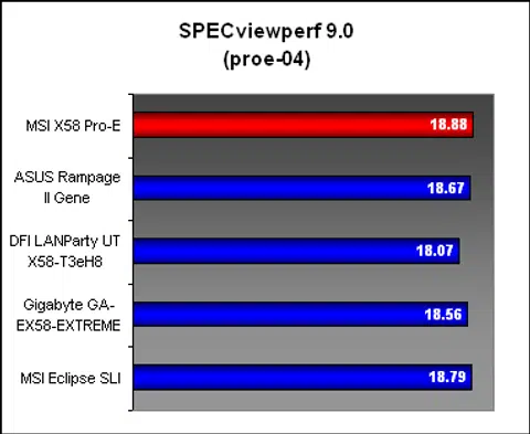 The MSI X58 Pro-E more than held its own here in SPECviewperf 9.0, where it was fractionally faster than the competition.