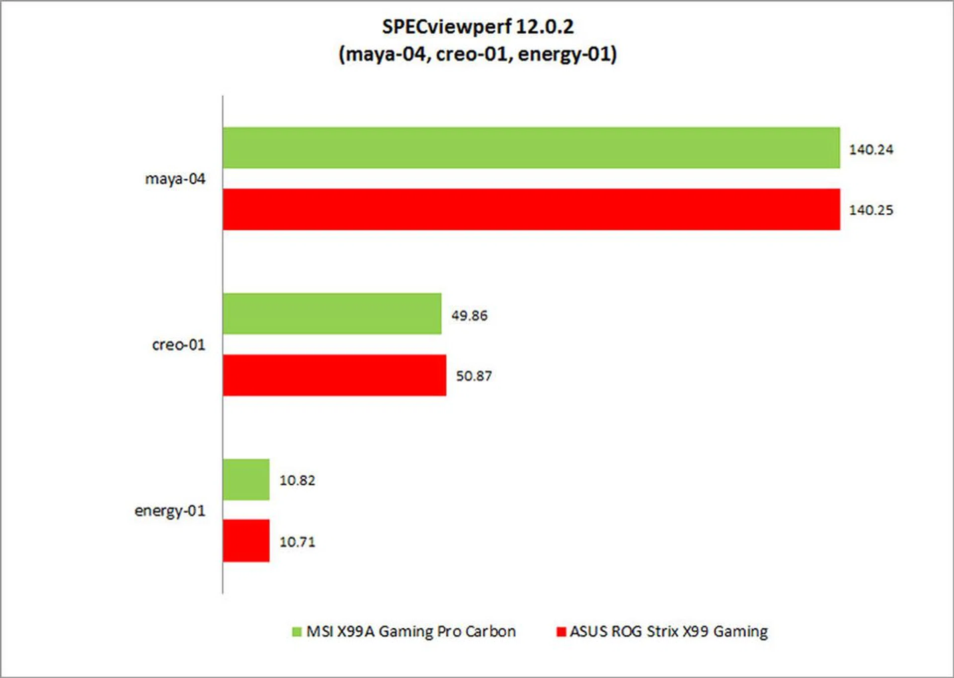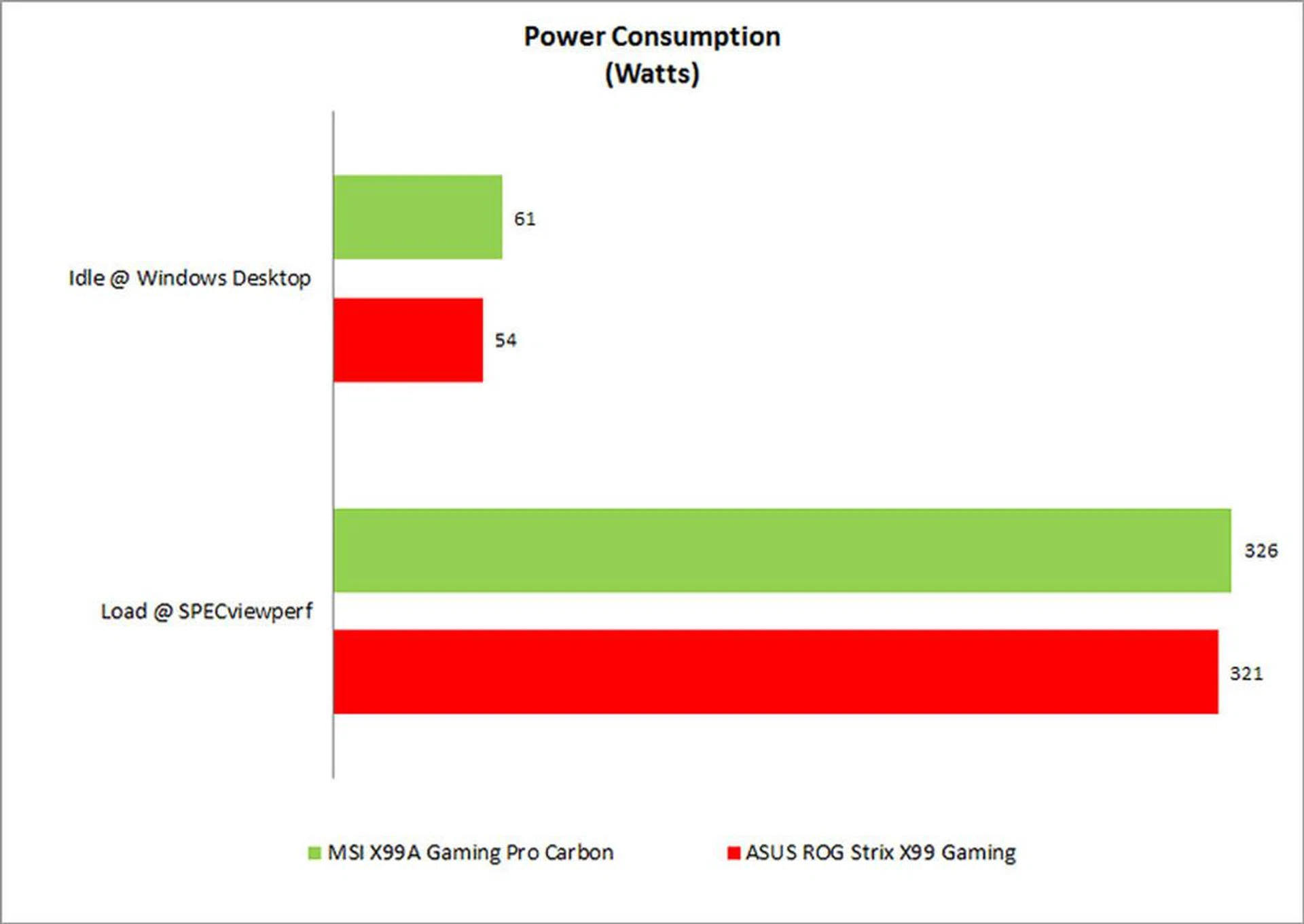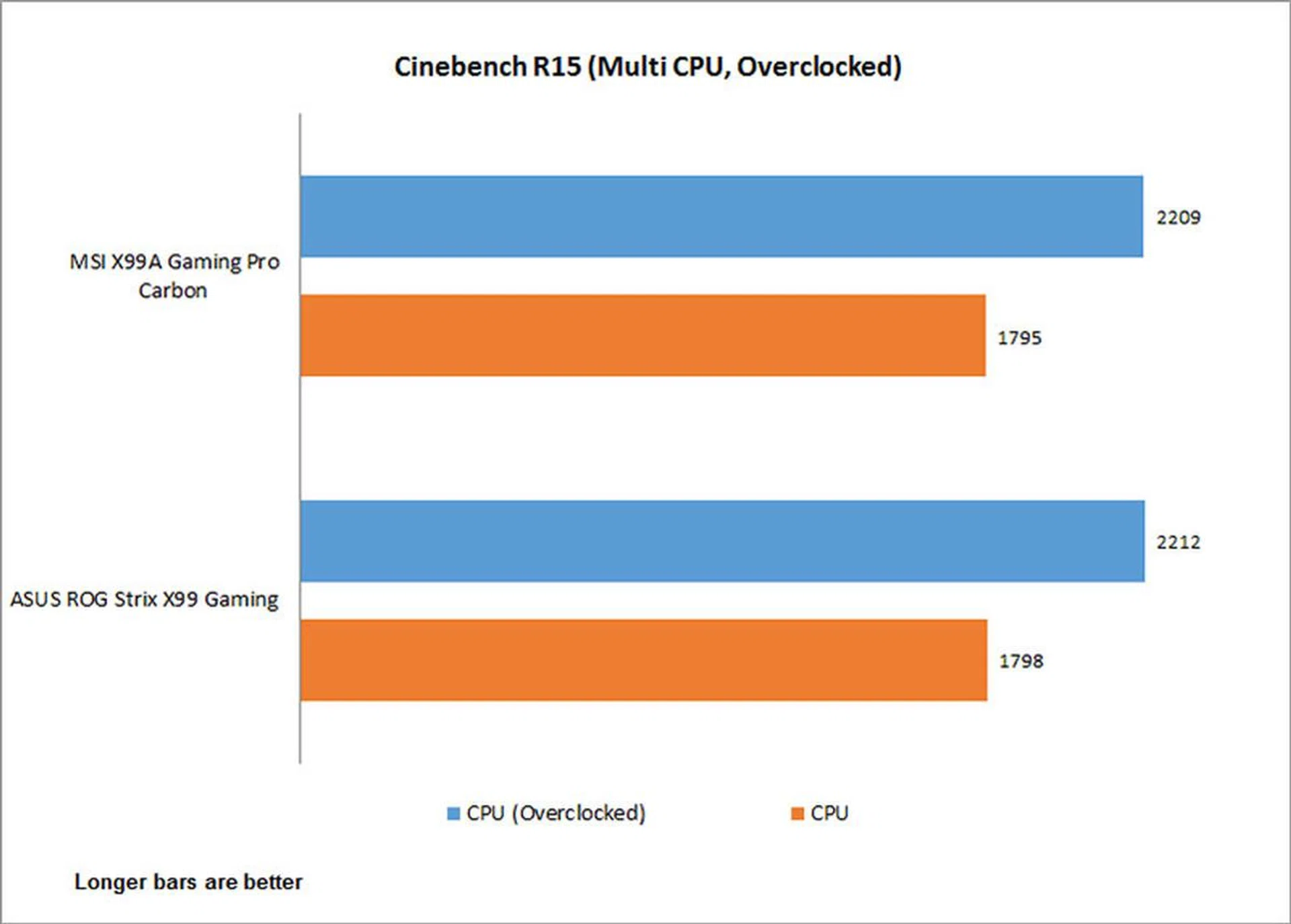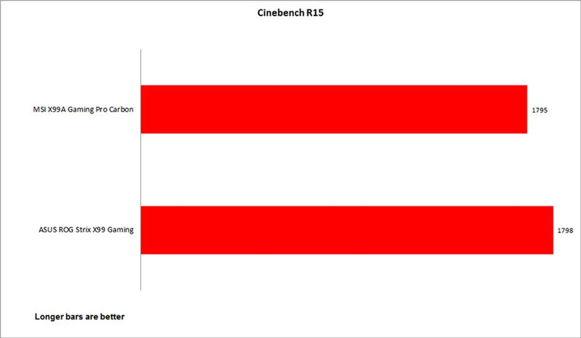 As we noted in our review of the ASUS ROG Strix X99 Gaming, we don’t have many Intel X99 motherboards to compare the board with, especially since we've chosen to use the new 10-core CPU, so we’ll use the latter board as a point of comparison for the MSI board.
