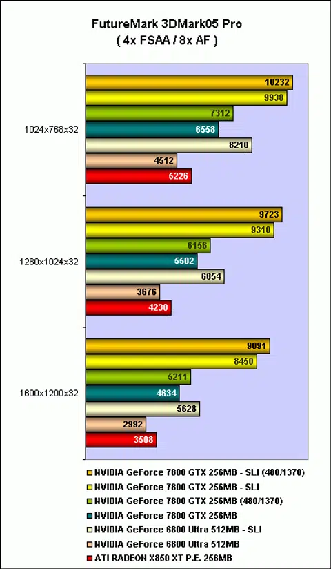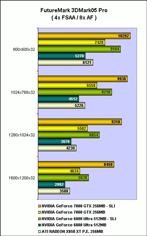 Results - 3DMark05 Pro (ver.120, 4x FSAA + 8x AF)