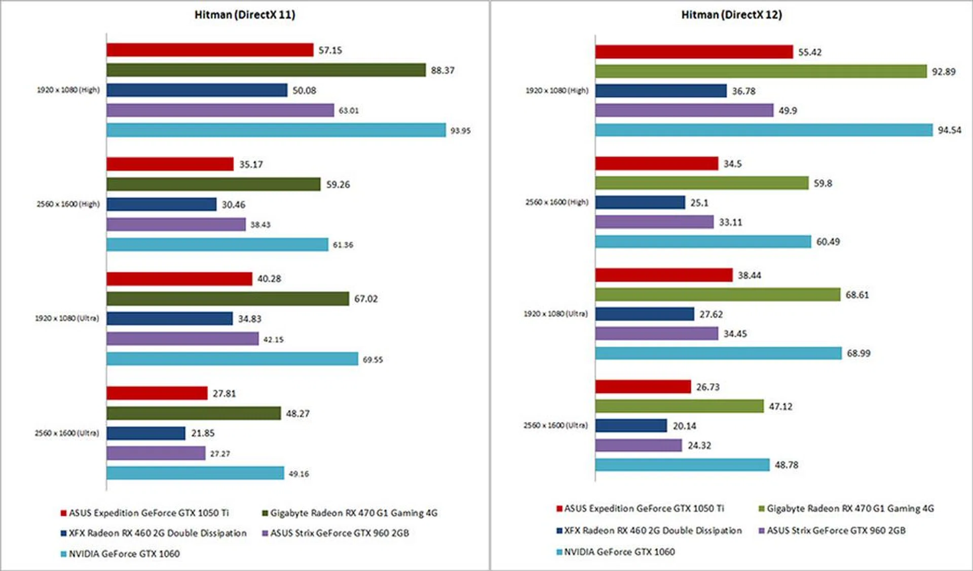 The performance gap between the GeForce GTX 1050 Ti and the Radeon RX 470 widened once again in Hitman. This time, the former card did not manage to reap as huge a benefit in DirectX 12, while the GeForce GTX 1050 Ti continued to exhibit minute performance drops with Microsoft’s latest API.