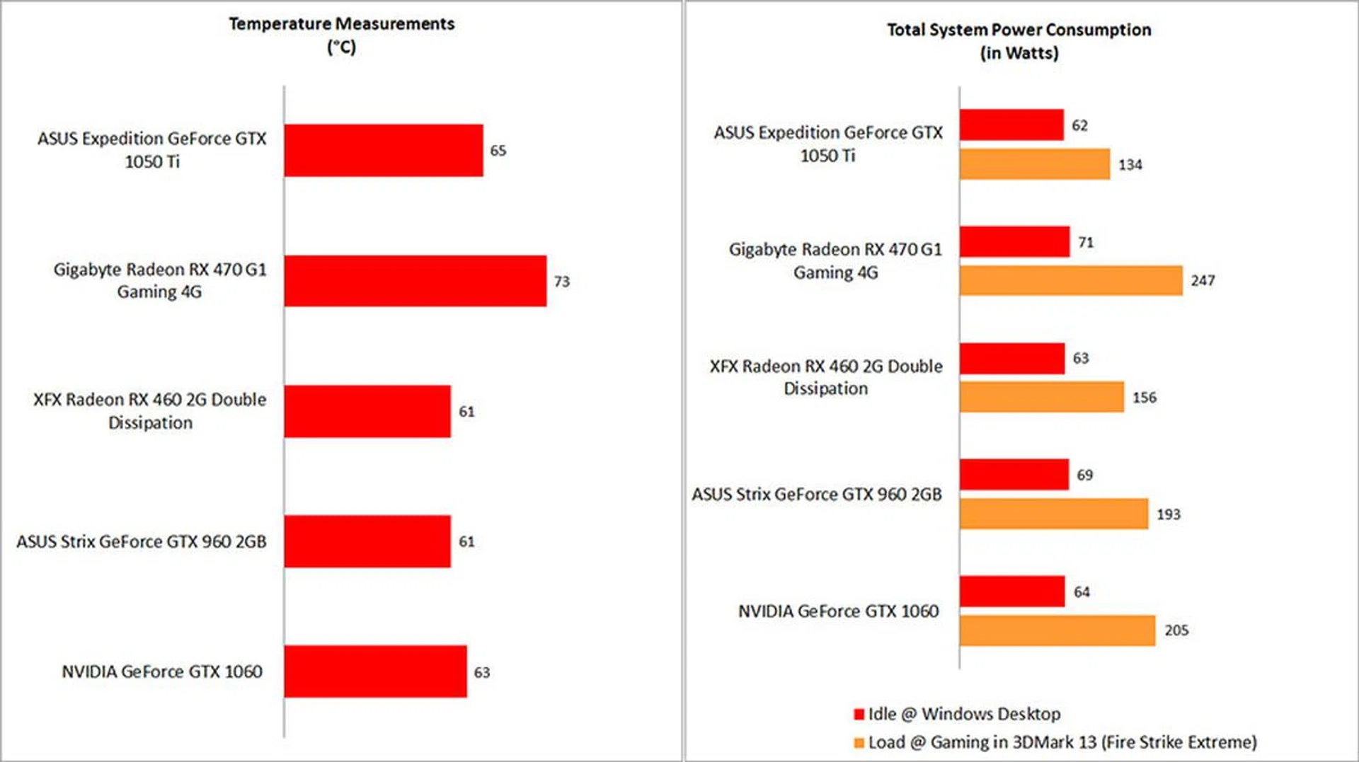 There’s nothing much to remark on when it comes to temperature. While we were surprised to see the GeForce GTX 1050 Ti run hotter than the GeForce GTX 960 and 1060, that cannot be attributed solely to the GPU because of the different coolers in play here.
