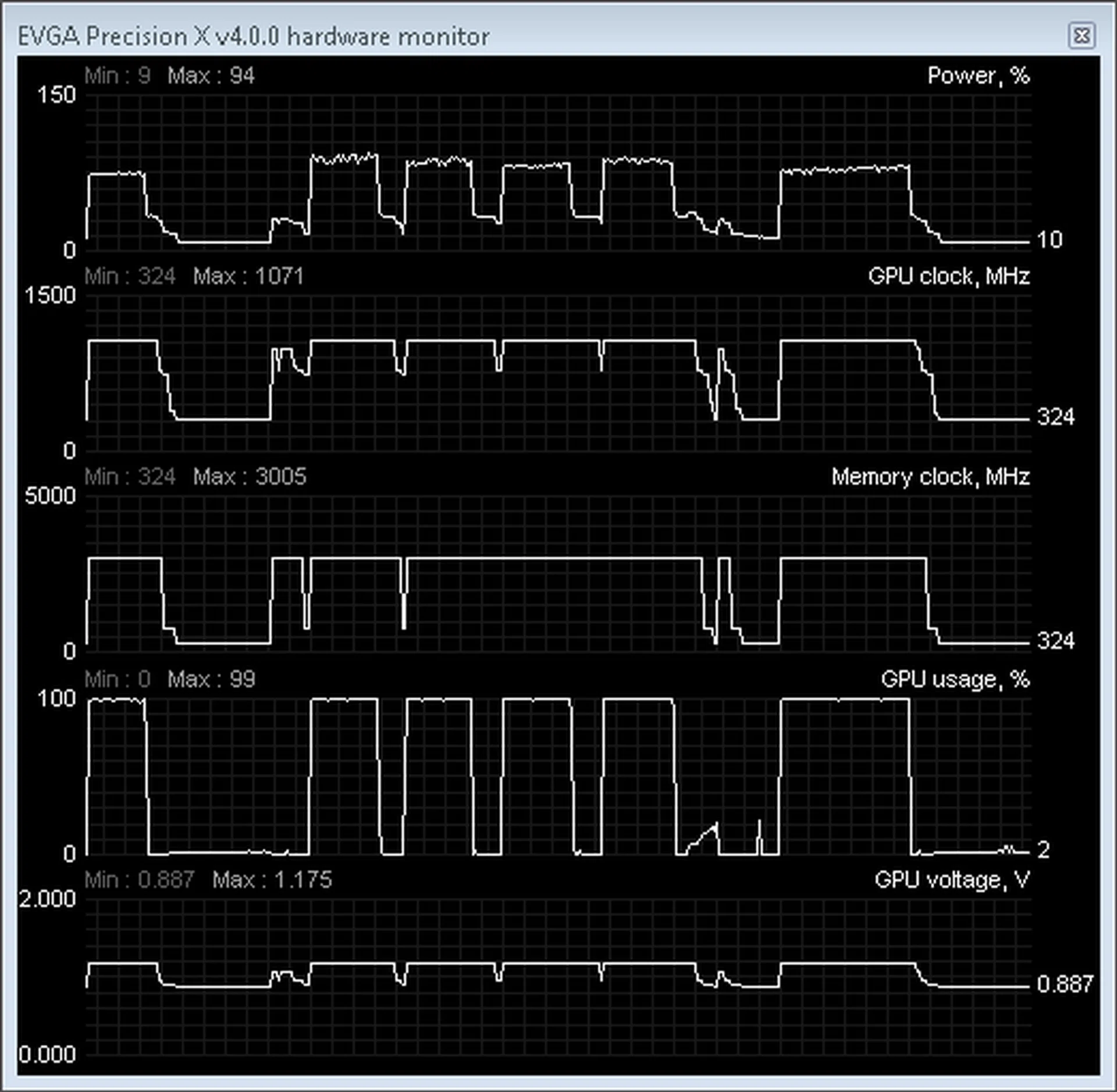 If we look at the GPU Boost chart, you can see that the 650 Ti Boost achieved a maximum boosted core clock speed of 1071MHz, an impressive 91MHz higher than its default clock speed.