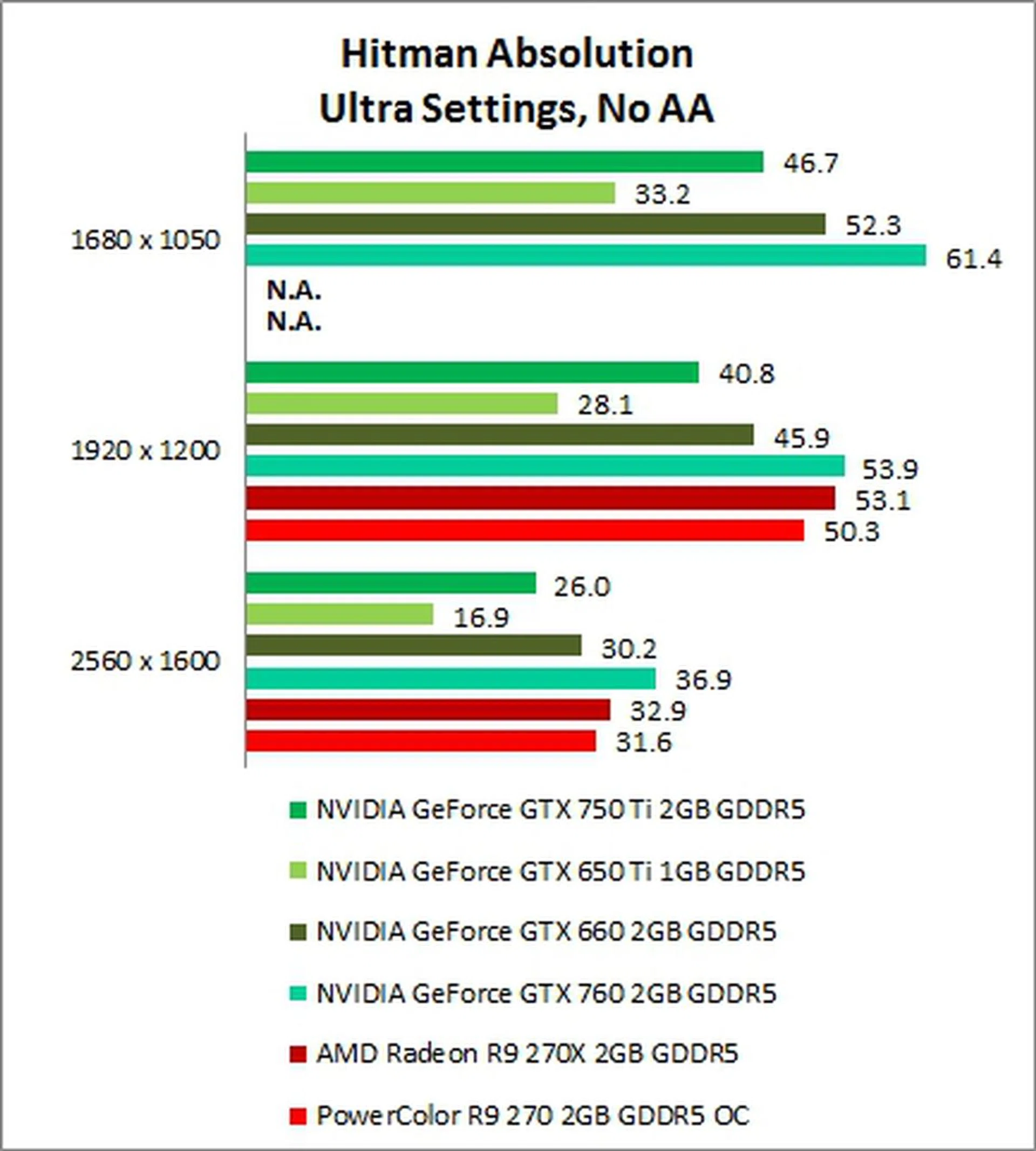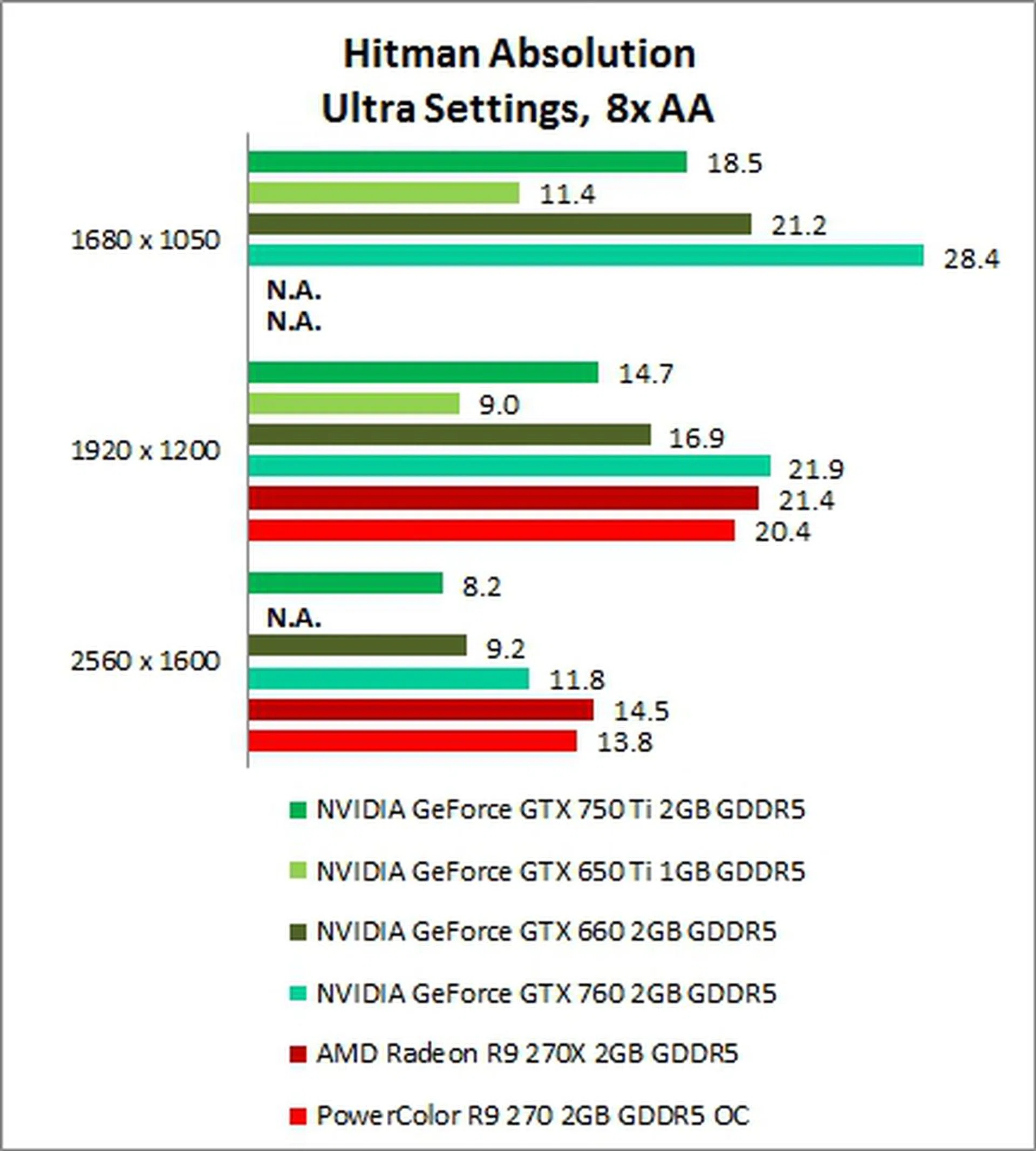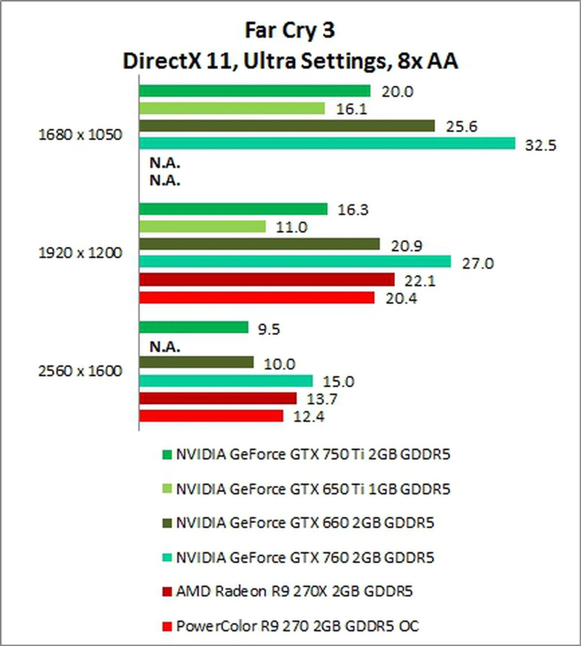 Update: Bringing in the GeForce GTX 650 Ti and GTX 660 into the mix of results, we can see the inadequacies of the former card for Full-HD gaming, while the larger GTX 660 counterpart improves upon the GeForce GTX 750 Ti to even manage beyond Full-HD gaming (just barely though as it clinched 28 FPS on average). However, by and large, most value/budget minded gamers are only pairing their system with a 1080p monitor, hence the new GeForce GTX 750 Ti is a good fit if one doesn't demand anti-aliased performance at this price point (which isn't possible).