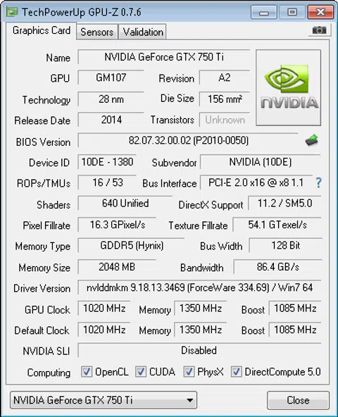 - NVIDIA GeForce GTX 750 Ti 2GB GDDR5 (ForceWare 334.69)