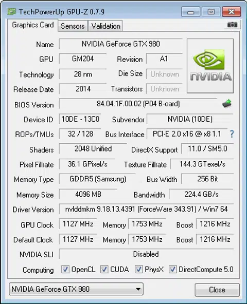 - NVIDIA GeForce GTX 980 4GB GDDR5 (ForceWare 343.91)