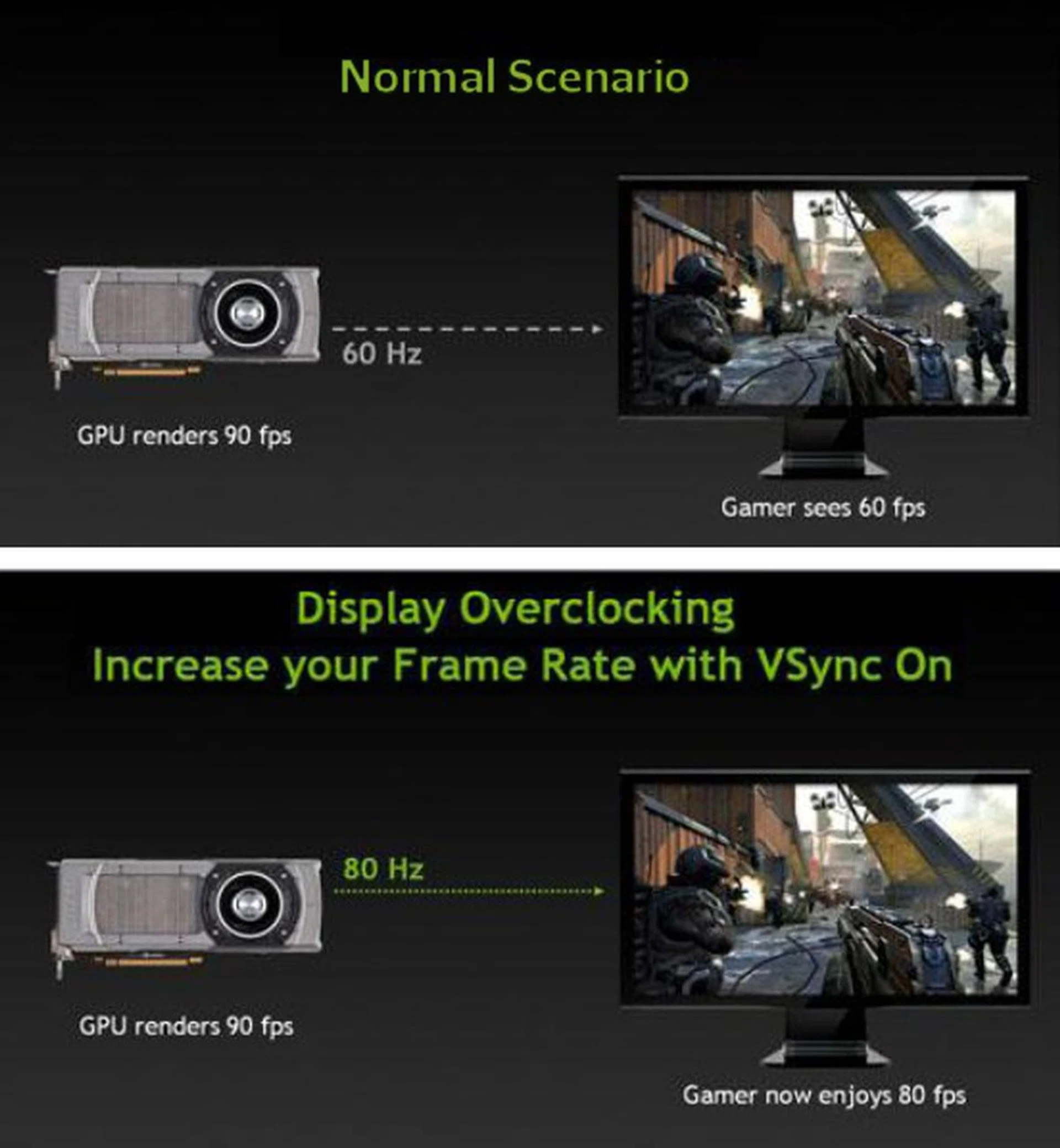 Unlike GPU Boost 2.0, NVIDIA tells us that Display Overclocking will be available for older NVIDIA cards as well, however no time frame for the updated drivers was given.