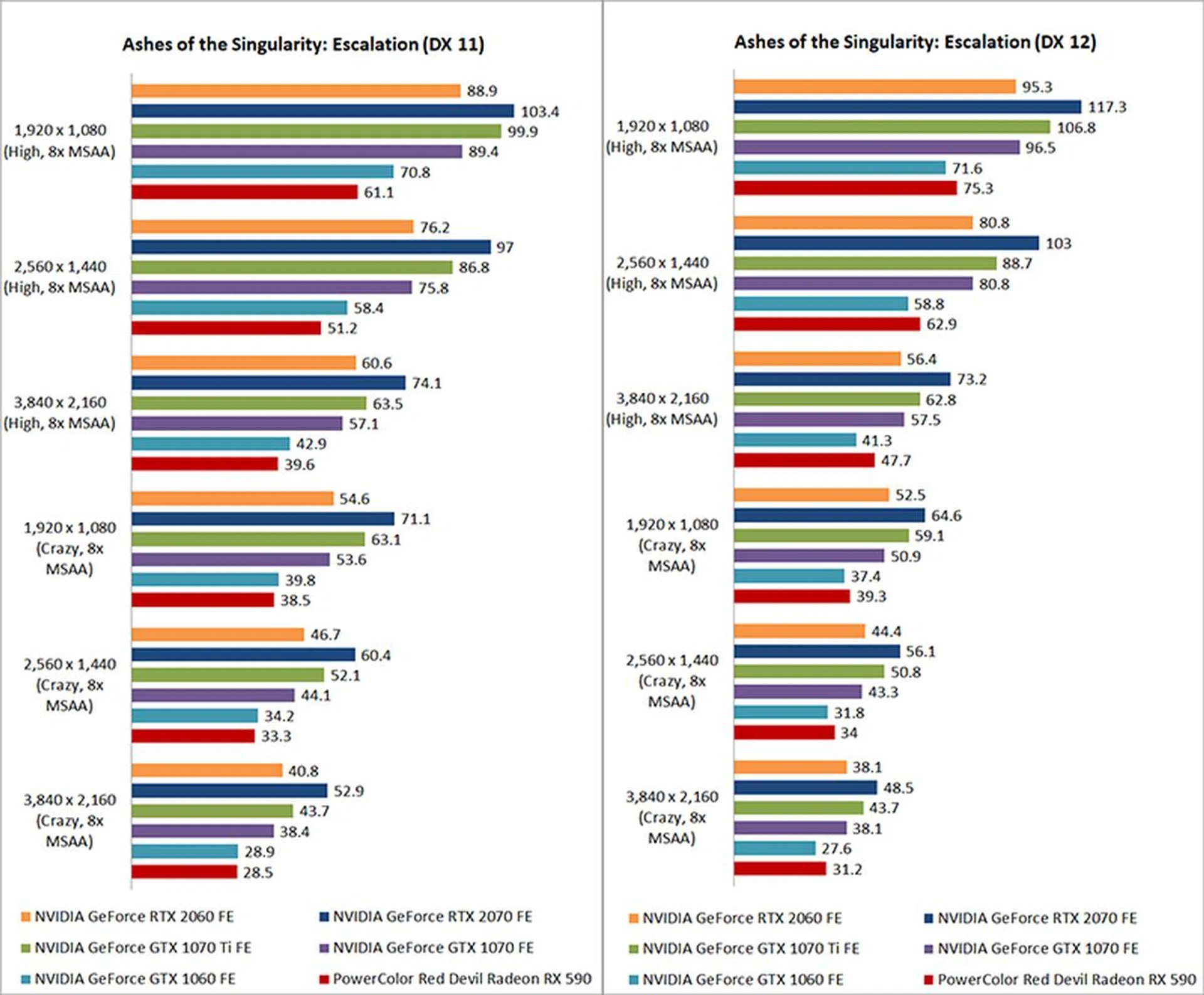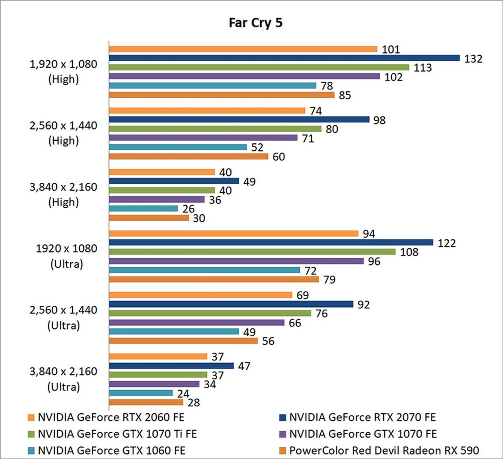 Once again, the GeForce RTX 2060 demonstrated significant improvements over the GeForce GTX 1060. At 1080 and Crazy settings (DirectX 11), the former was roughly 31 per cent quicker. It also turned out very similar numbers as the GeForce GTX 1070, although it was overall around 26 per cent behind the GeForce RTX 2070.