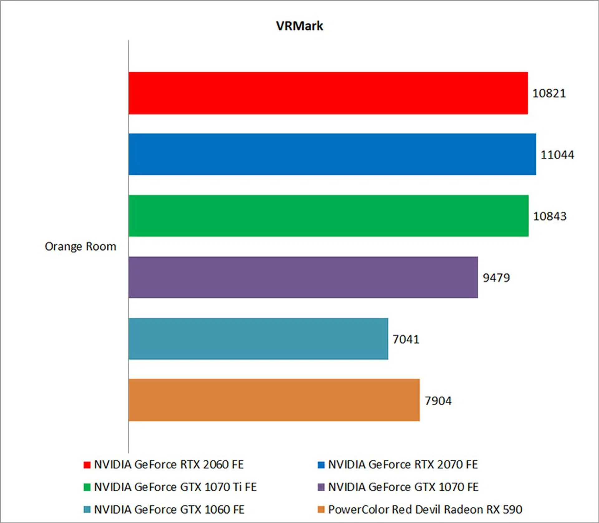 Futuremark’s VRMark benchmark is designed to assess a PC’s ability to handle high-performance headsets like the HTC Vive and Oculus Rift. If a PC passes the Orange Room test, it is ready for the latter two systems. The second graph also shows how the cards fared against the benchmark's target of an average FPS of 109.
