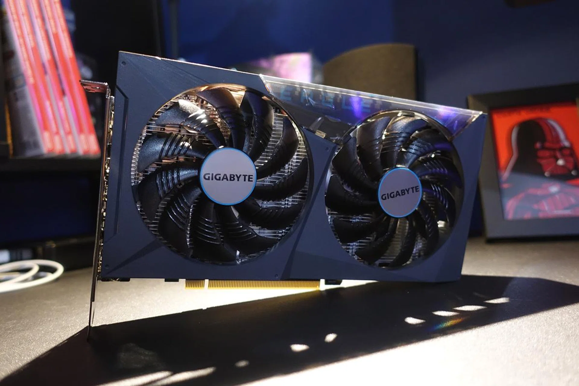 If you’re looking to build an entry-level gaming system with a mini-ITX casing in mind, the Gigabyte Eagle's diminutive size (213mm long) and low power draw (a 450W PSU is more than enough) makes it an appealing option – perhaps a little more so than the GeForce RTX 3060, which has a higher minimum power draw of 170W. For display outputs, the Gigabyte card sports two HDMI 2.1 and two DisplayPort 1.4a outputs. It is also cooled by Gigabyte’s Windforce technology, which encompasses anti-turbulence inclined fans, ultra-quiet PWM fan and pure copper heat pipe.