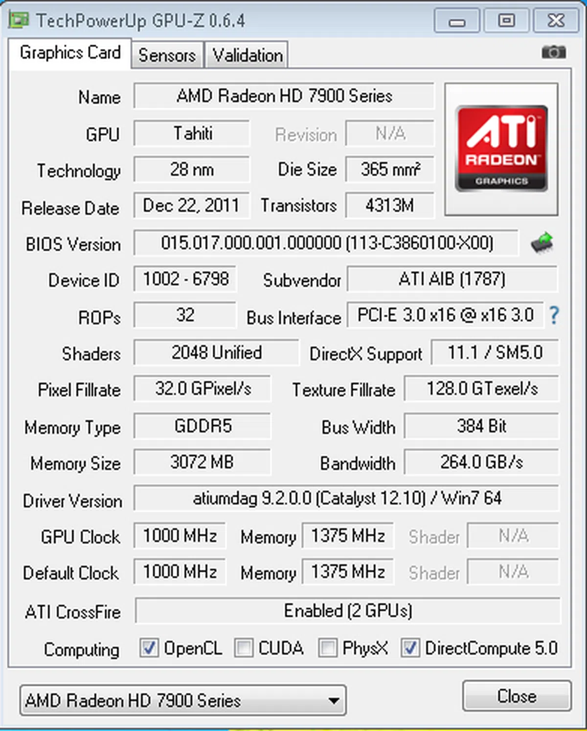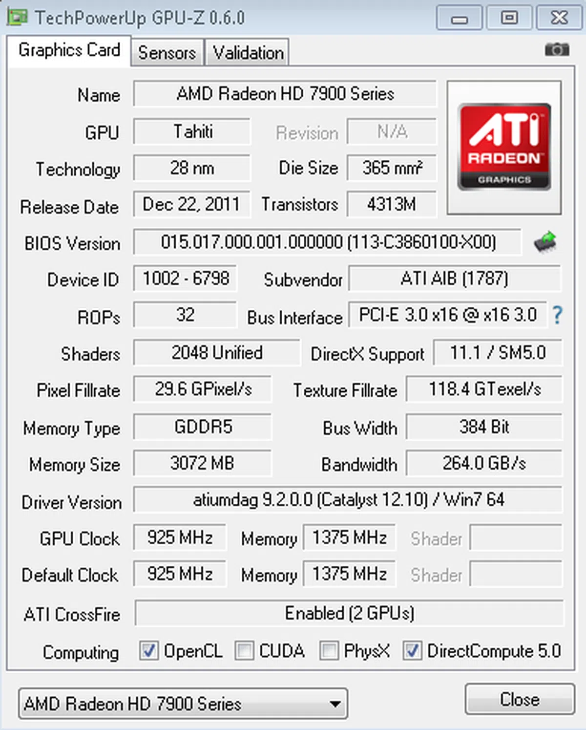 - AMD Radeon HD 7970 3GB GDDR5 2-way CrossFireX (AMD Catalyst 12.10)