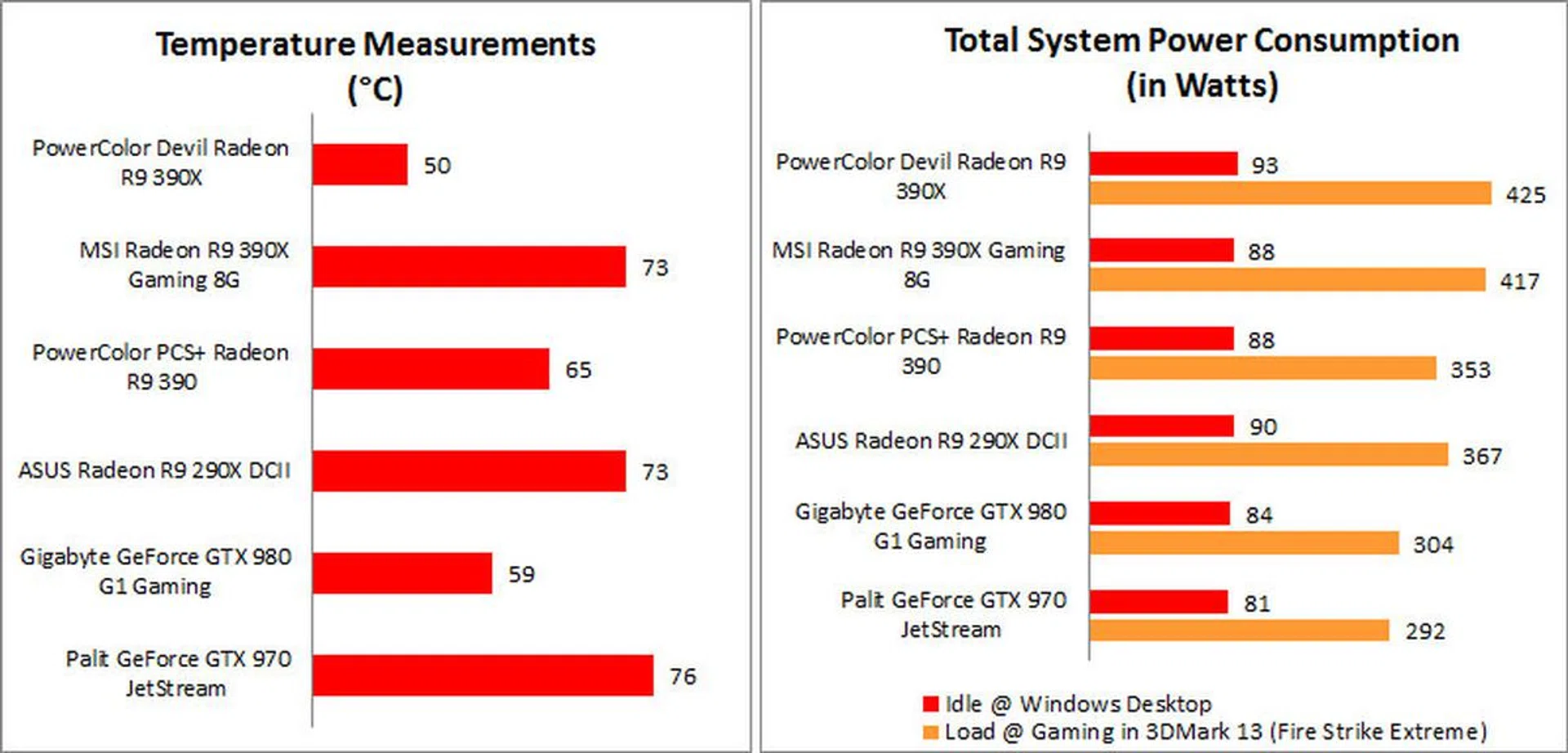 3DMark 2013’s FireStrike Extreme benchmark was used for our temperature and power consumption tests.
