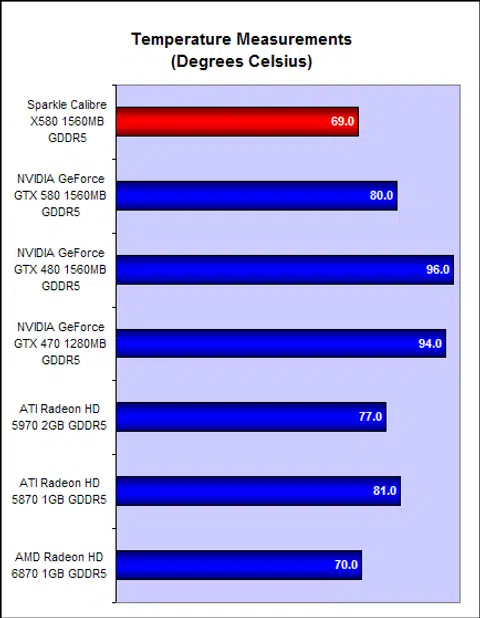 In all, the Sparkle Calibre X580 is a decent take considering it's the first non-reference GeForce GTX 580 card to hit the market. Although the card is not much quicker than a reference one, cooling has been significantly improved nonetheless, so if you don't mind the space that it takes up, it's a decent choice for prospective GTX 580 buyers.