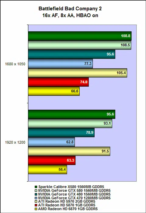Given the higher clock speeds, we expected the Sparkle Calibre X580 to be faster than a reference GeForce GTX 580 and the card duly delivered. Sadly however, the increase in performance wasn’t really great and would probably go unnoticed by most people, because the Sparkle card was only about 1% to 4% quicker.