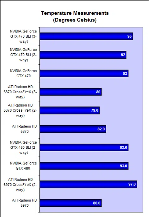 We were glad to report that passive cooler not withstanding, the XFX was only slightly warmer than the reference fan-based version. Obviously the heat pipes are doing their jobs of diverting the heat to the aluminum fins. The key to this is the airflow of the casing and whether your environment has air-conditioning like our lab.