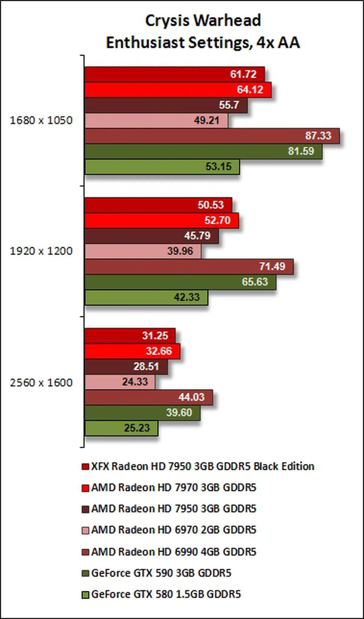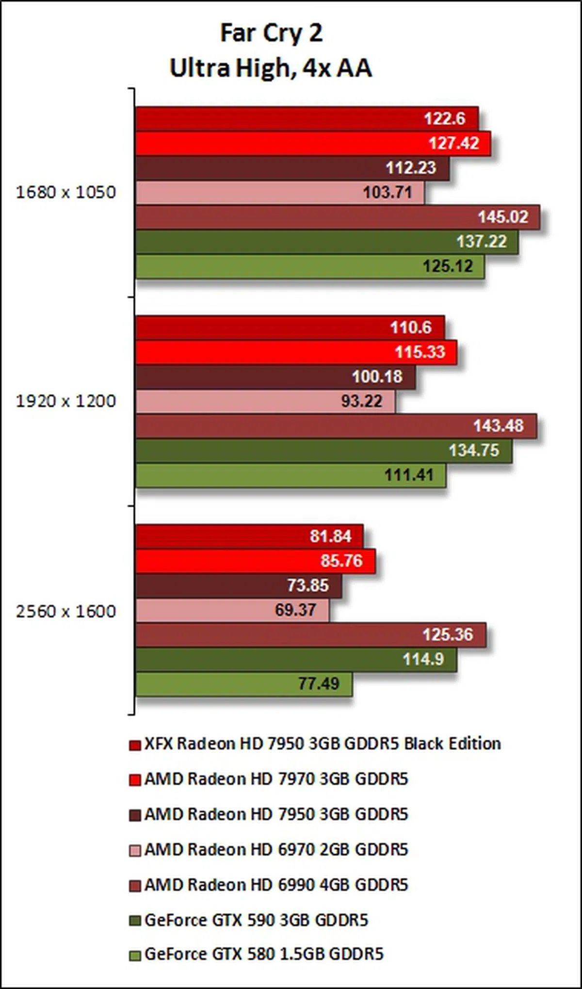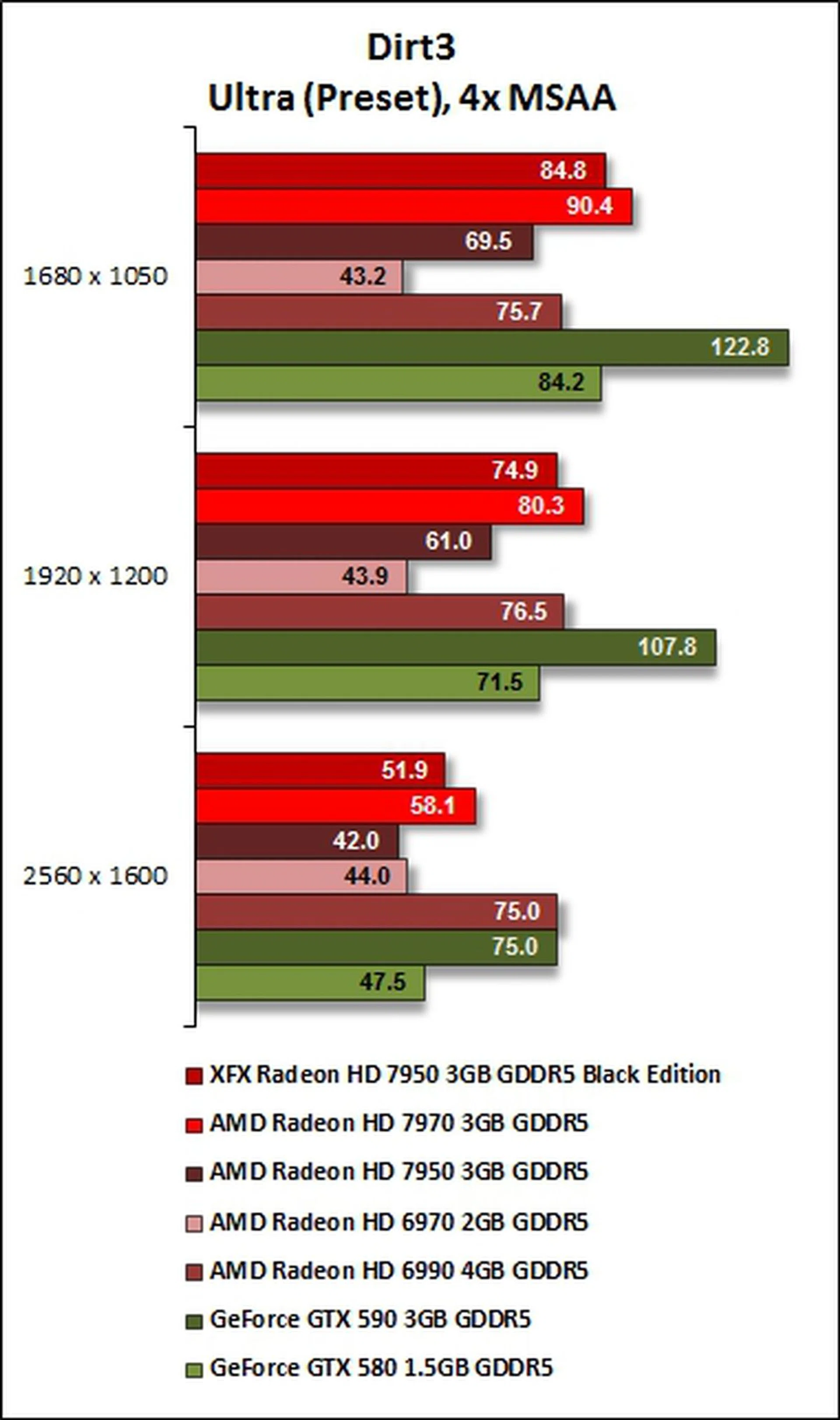 Understandably, the XFX R7950 was clearly outclassed by the dual-GPU cards from both NVIDIA and AMD but it managed to put itself well ahead of last year's single GPU graphics card king, the NVIDIA GeForce GTX 580.