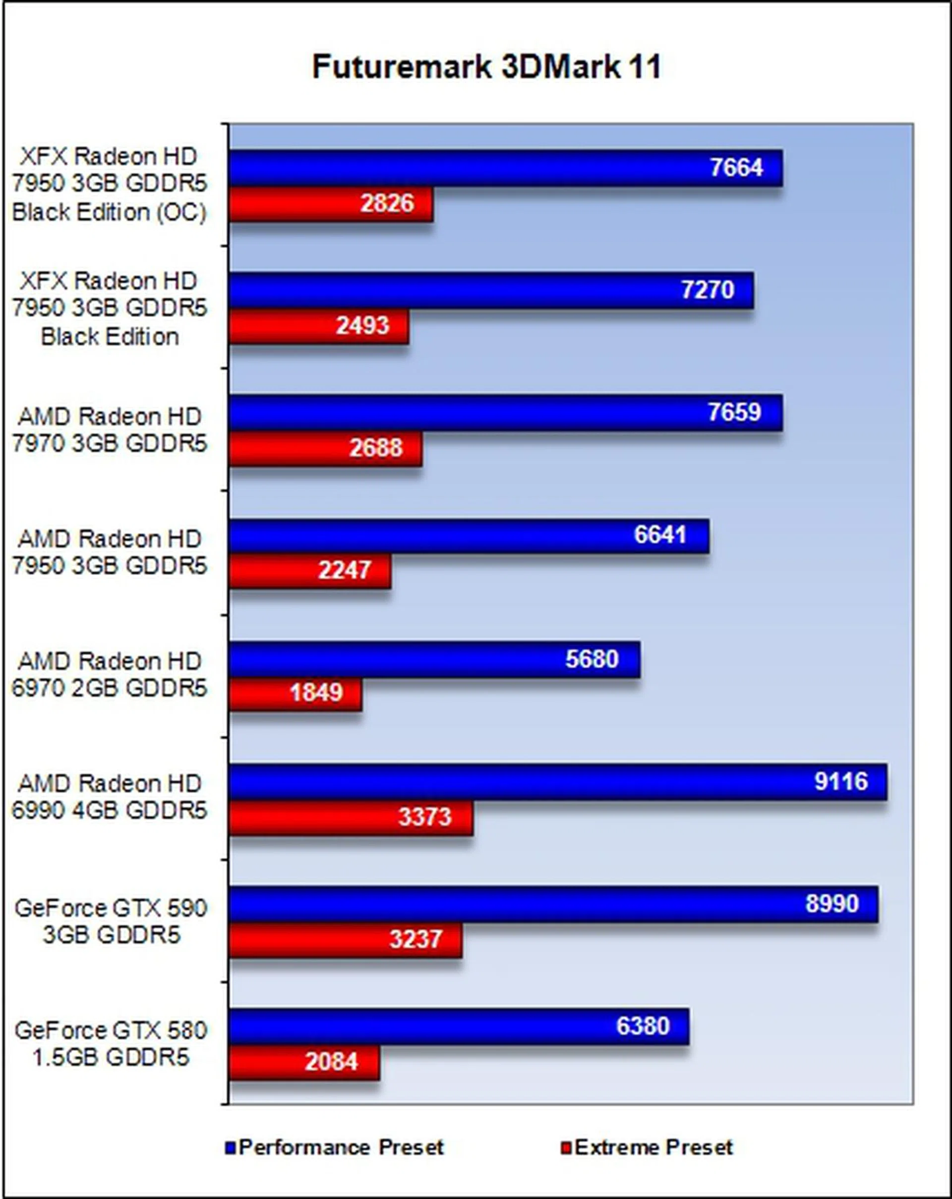 - AMD Radeon HD 6990 4GB GDDR5 (AMD Catalyst 11.11)