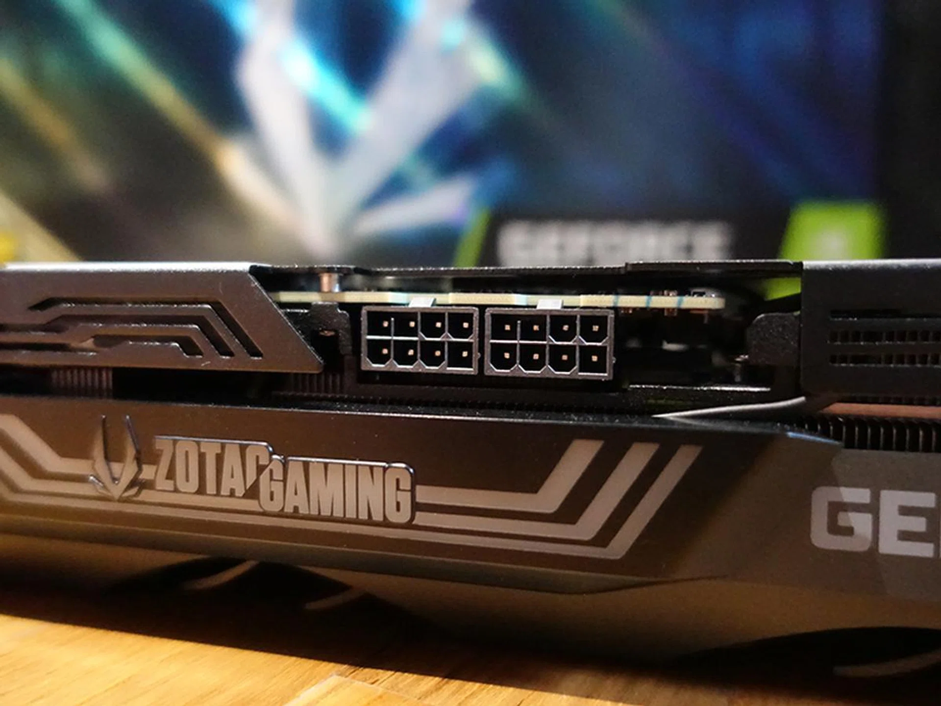 The card uses Zotac's new IceStorm 2.0 cooling system, which has been built specifically to offer wider coverage of the GPU. The new 11-blade 90mm fans are supposed to increase airflow by up to 10% compared to the previous-generation design, while the heat sink comprises three groups of aluminum fin stacks and seven copper heat pipes to improve heat transfer and distribution. The heat pipe layout has also been improved to increase direct GPU contact in a more densely packed space. The GPU die makes contact with a large base plate, and it's framed by thermal pads to help whisk heat away from the surrounding components, such as the memory chips.