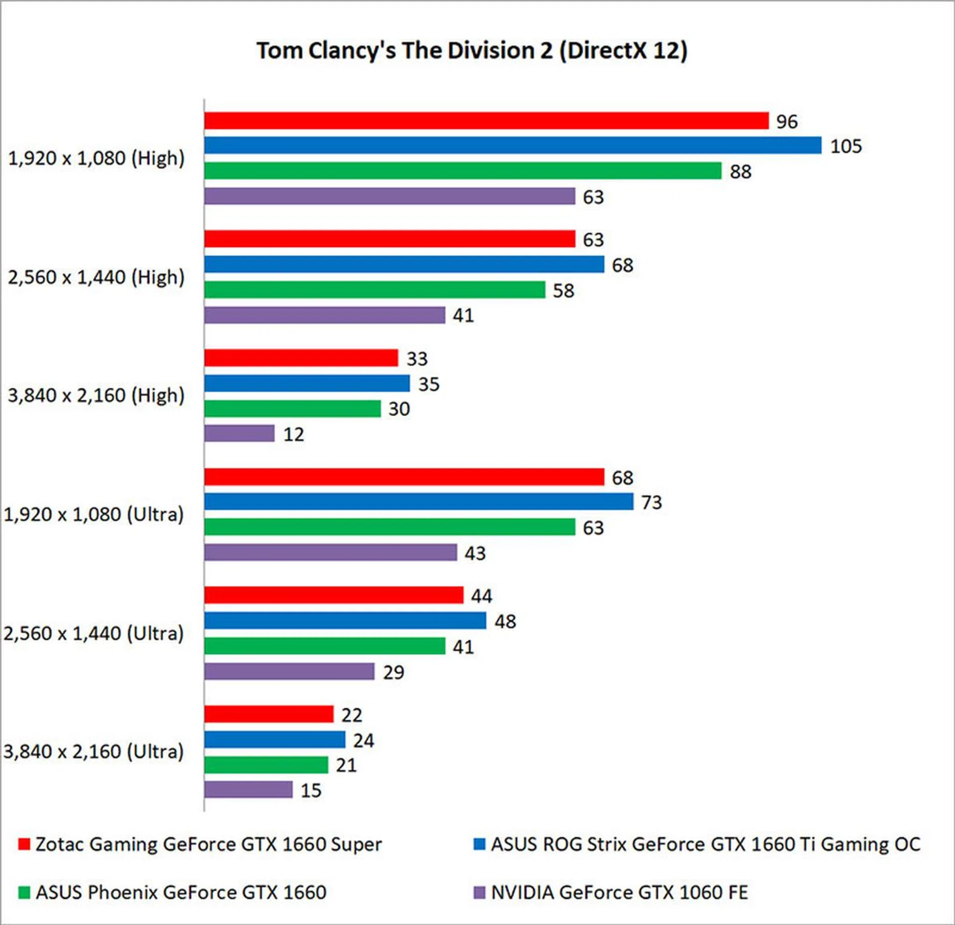 A similar pattern plays out in The Division 2, where the GeForce GTX 1660 Ti inched ahead of the GeForce GTX 1660 Super by just over 7 per cent at 1440p and High settings. The GeForce GTX 1660 Super also proves that it's more than capable of handling nearly any modern game at 1080p and Ultra settings, or even at 1440p but with some of the settings turned down.