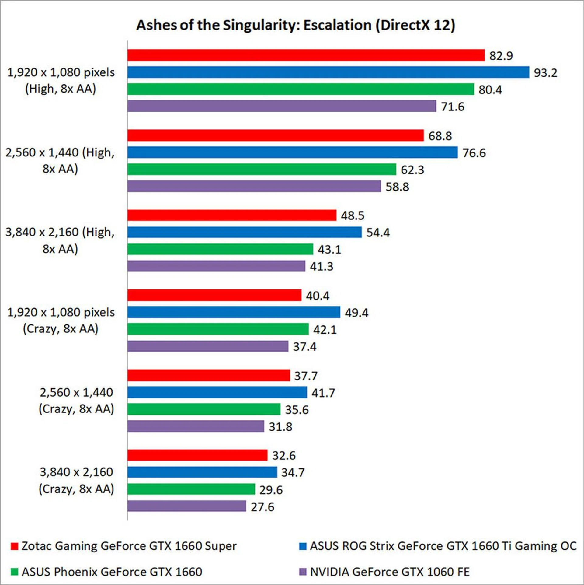 The GeForce GTX 1660 Super performs very similarly to the GeForce GTX 1660 in Ashes of the Singularity: Escalation. It's also just under 11 per cent slower than the GeForce GTX 1660 Ti at 1440p and High settings.