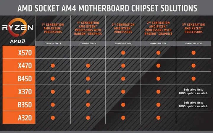 However, if you intend to ride on AMD's wave to support the first platform to have PCIe 4.0 connectivity, you'll need to invest in a new AMD X570 chipset based motherboard. For everyone else, here's AMD's Ryzen desktop processor and motherboard chipset support matrix:-