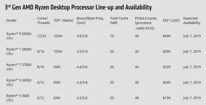 The star of the family is none other than the 12-core Ryzen 9 3900X that can crunch up to 24 threads, boost up to 4.6GHz, has 70MB of cache in total and all this at 105W TDP with a suggested retail price of just US$499. The bolstered capabilities of the Ryzen 3000-series can easily satiate powerful content creators and demanding gamers alike and is likely the reason why AMD doesn't see a need to release updated Threadripper processors.