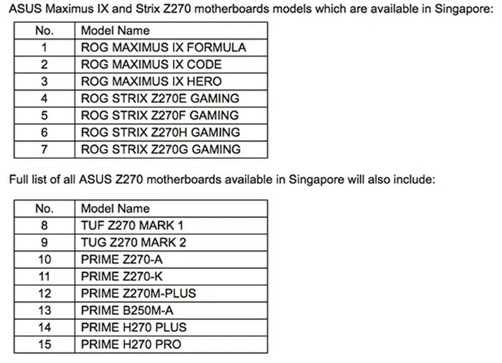 To recap, these are the new Z270 motherboards that ASUS will be bringing to Singapore:
